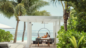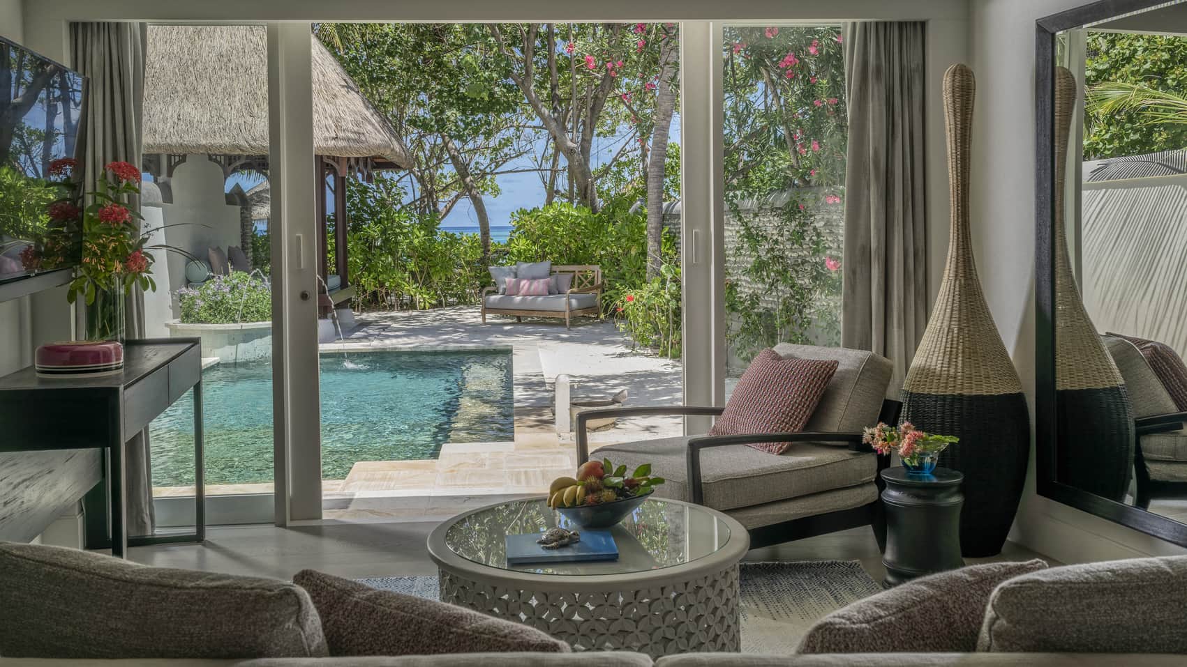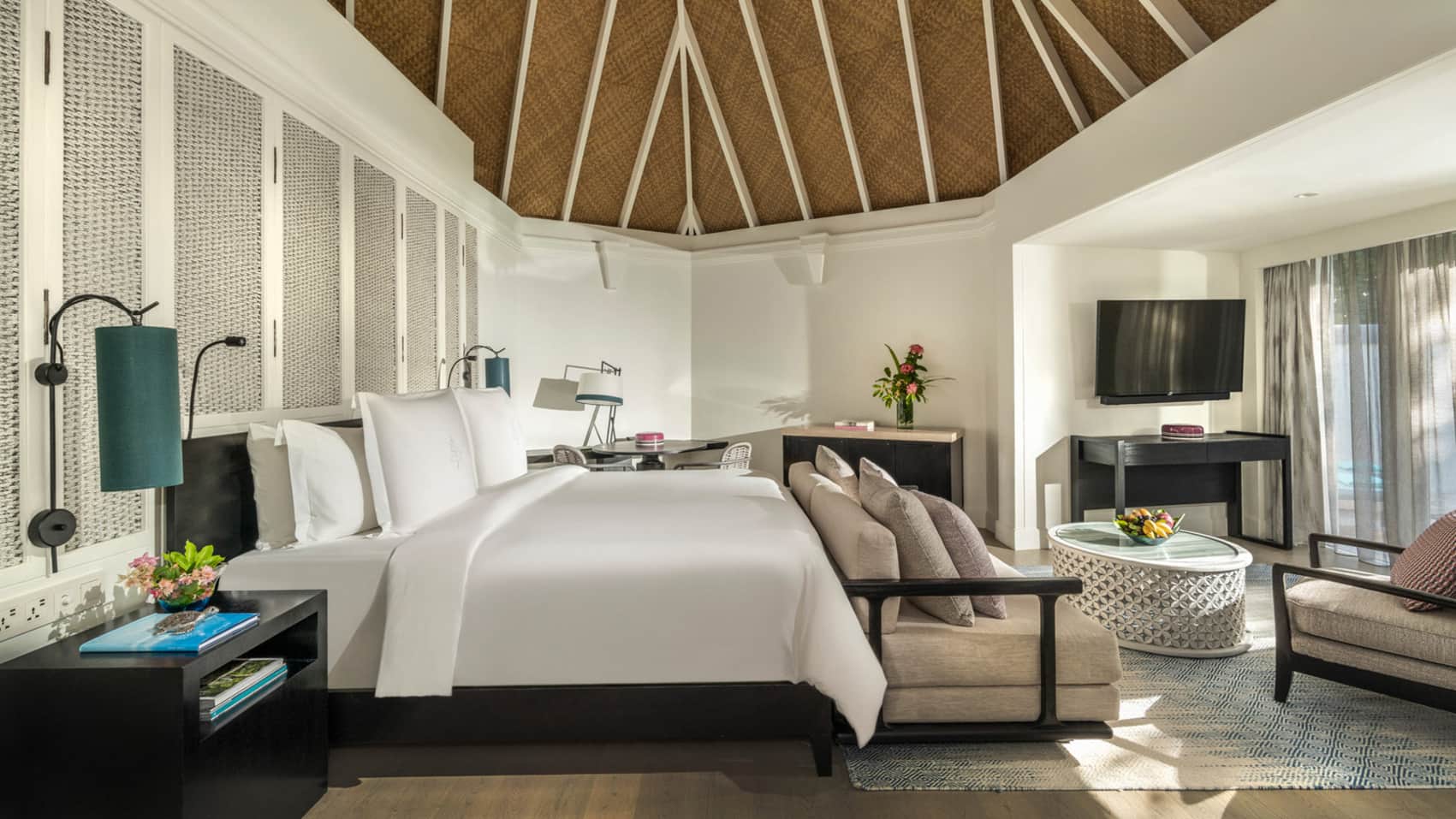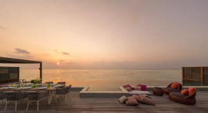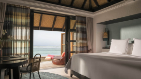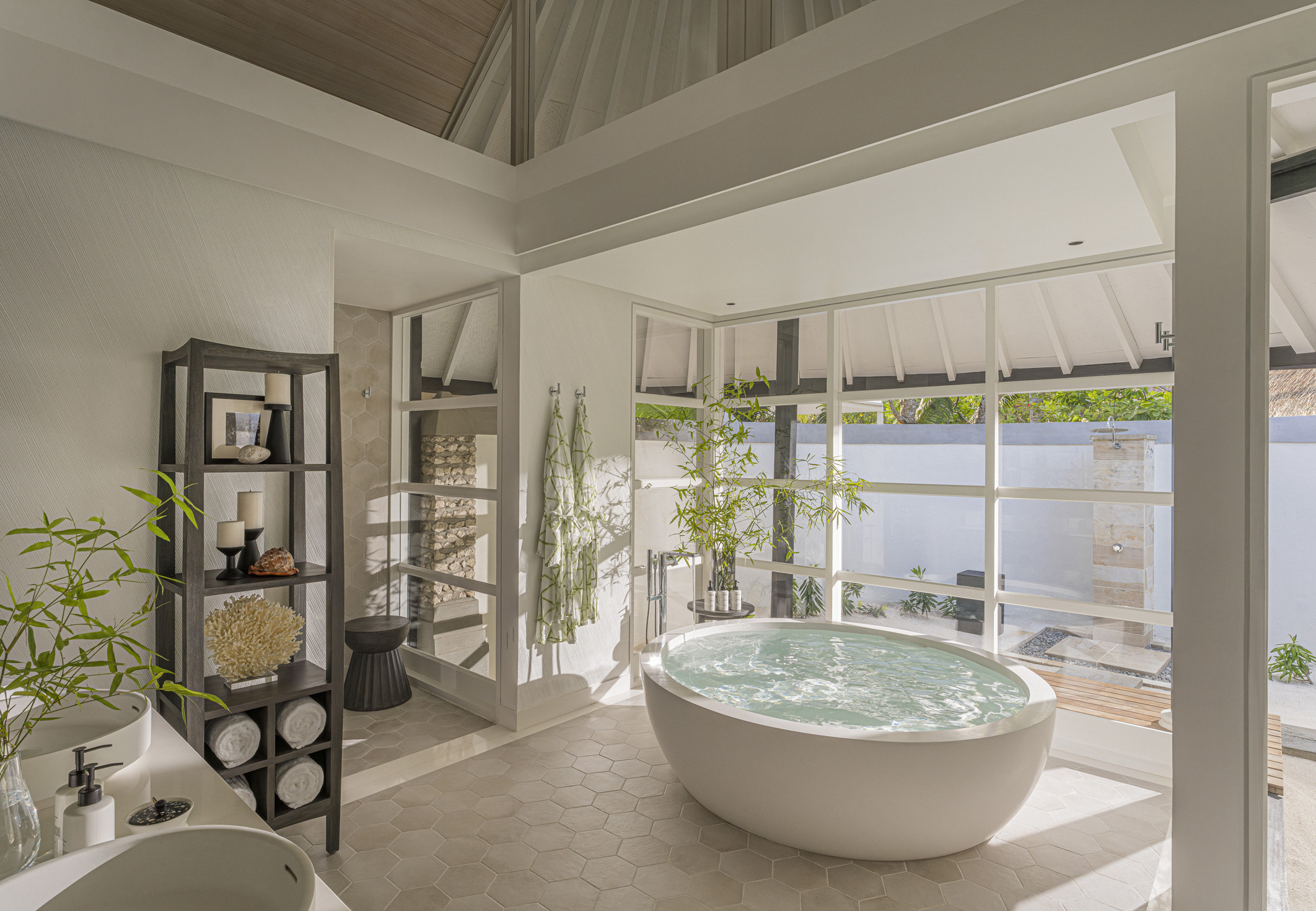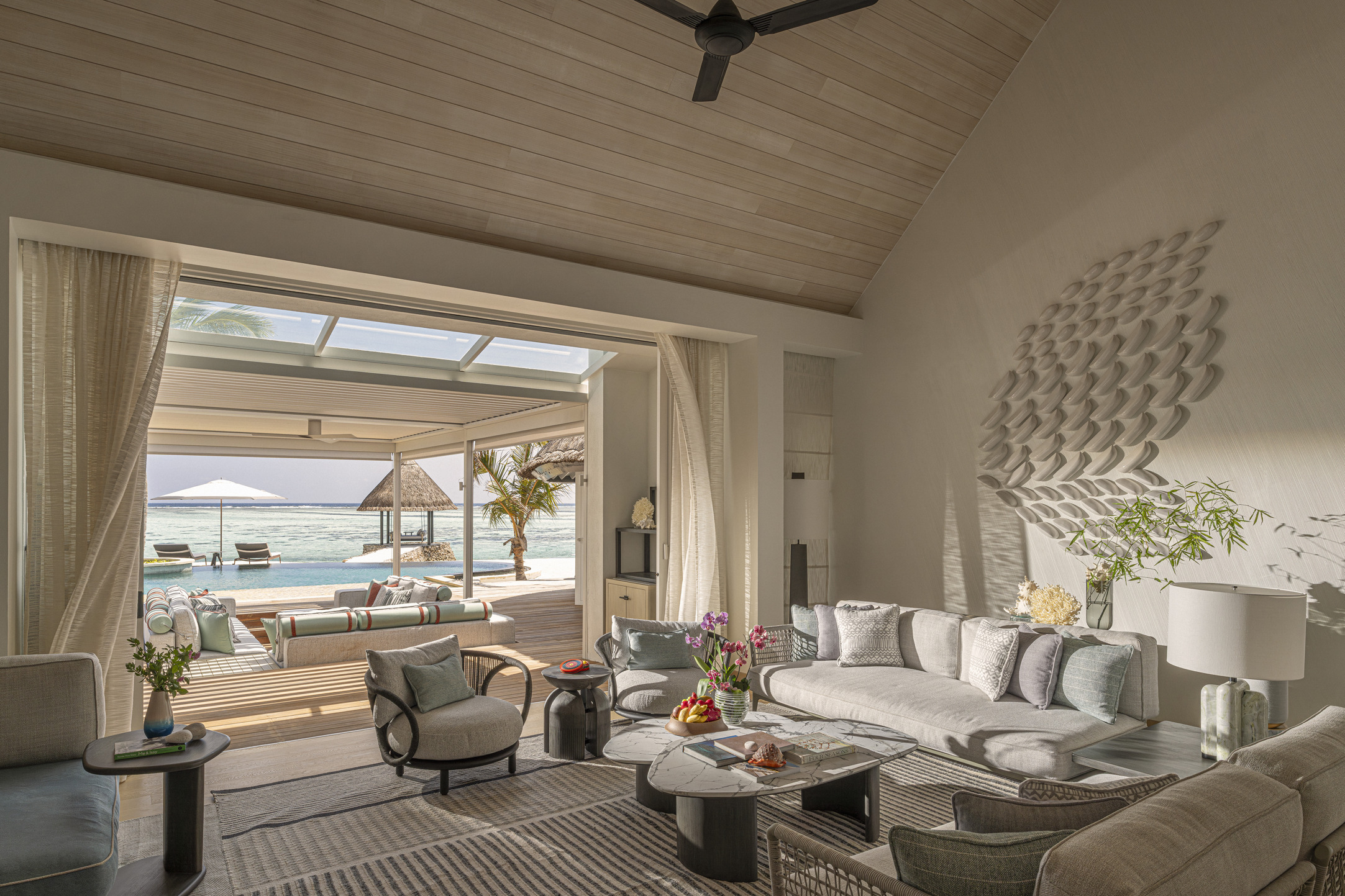 Вилла на берегу. 2 спальни (каждая с кроватью king-size), гостиная, гардеробная, 2 ванные комнаты (одна – с ванной и душем, другая – с душем), душ на открытом воздухе, терраса с бассейном. Гостиная и спальни разделены дверями.