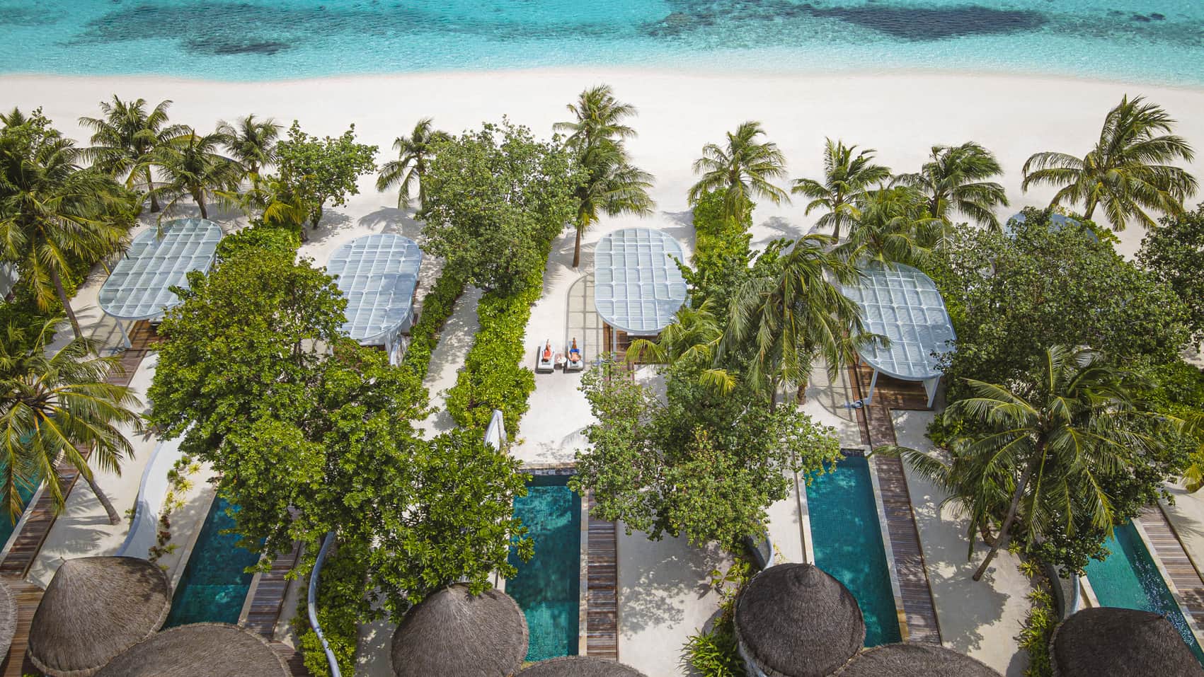 96 вилл, 4 ресторана, 2 бара, частные песчаные пляжи, 2 открытых бассейна, детский бассейн, спа-центр, тренажёрный зал, 2 павильона для занятий йогой, центр водных видов спорта, дайвинг-центр, теннисный корт, корт для падел-тенниса, детский клуб, конференц-зал, бизнес-центр, библиотека.