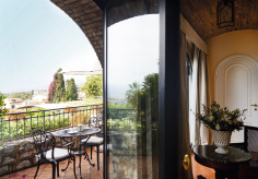 Отель по праву считается лучшей смотровой площадкой Сицилии: его с террас открывается захватывающая панорама, где бирюза Ионического моря встречается с величавым силуэтом вулкана Этна. Отель – идеальная точка для посещения Taormina Arte, летних концертов и оперных постановок в античном театре. Гости Grand Hotel Timeo имеют доступ к Lido Villeggiatura – пляжному клубу отеля Villa Sant’Andrea, расположенному на берегу живописной бухты Маццаро, куда гостей за 15 минут доставляет бесплатный шаттл, курсирующий между двумя отелями.
