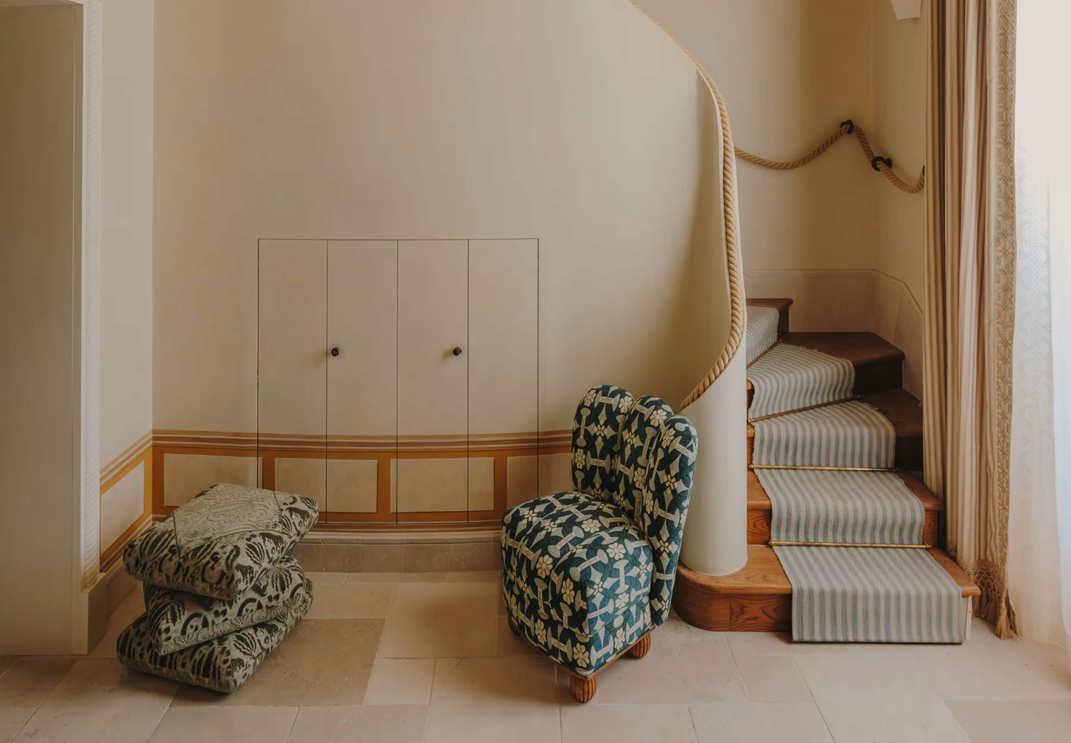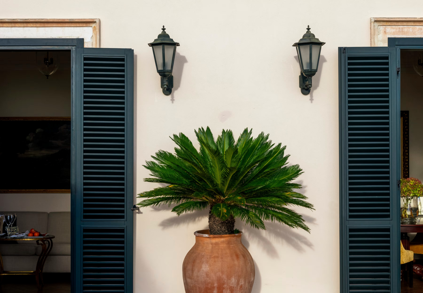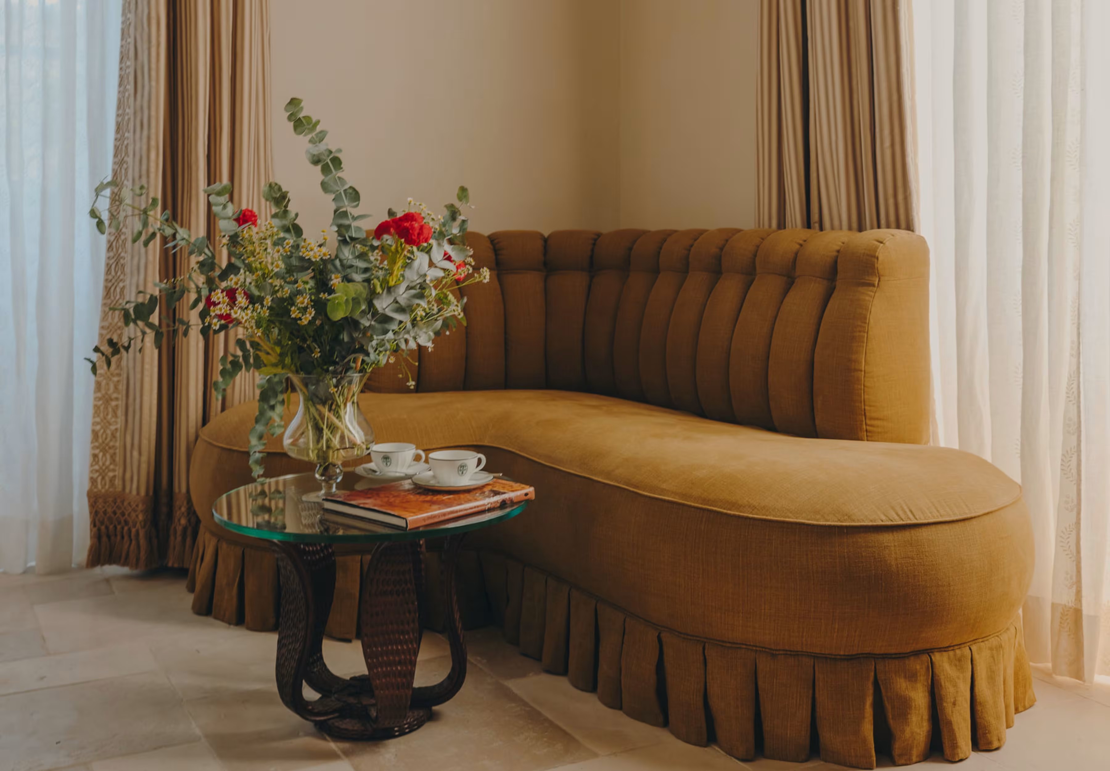 Здание, выдержанное в традициях сицилийского барокко, окружает частный парк площадью более 2 га. Номера распределены между историческим главным корпусом и виллой Timeo. Интерьеры первого следуют барочному канону: антикварная мебель, картины в позолоченных рамах, изящные бра-канделябры и ванные комнаты, отделанные благородным мрамором. В сезоне 2026 года вилла Timeo предстанет в обновлённом облике: всемирно известный дизайнер Лаура Гонсалес переосмыслила её пространства, черпая вдохновение в многовековой истории Сицилии и ярких орнаментах майолики. Туалетные принадлежности в ванных комнатах предоставлены итальянским парфюмерным домом Acqua di Parma.