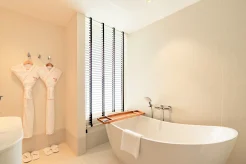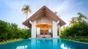 Вилла на берегу. Спальня с кроватью king-size или кроватями twin, гостиная зона, ванная комната с ванной и душевой кабиной, терраса.