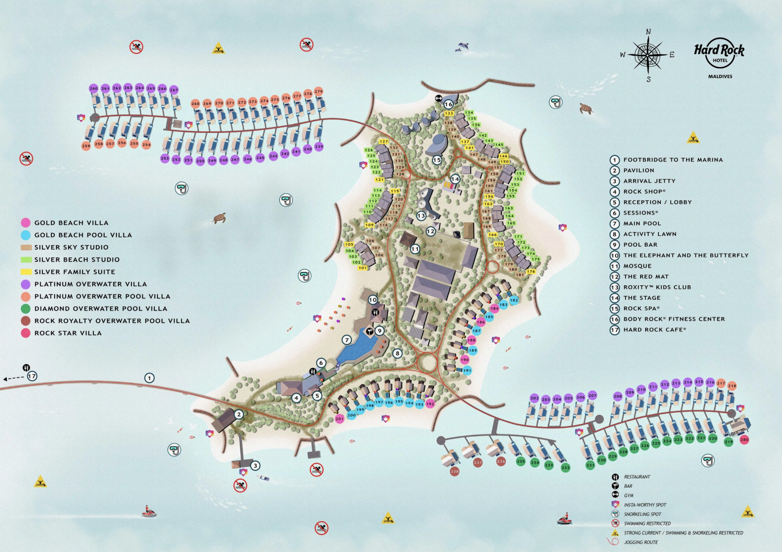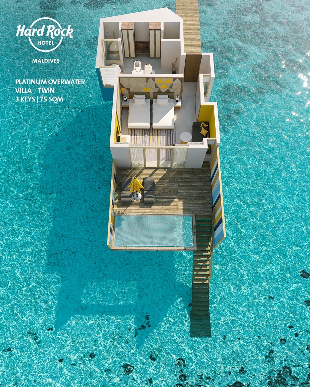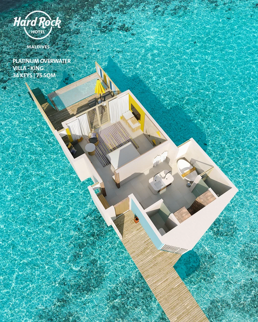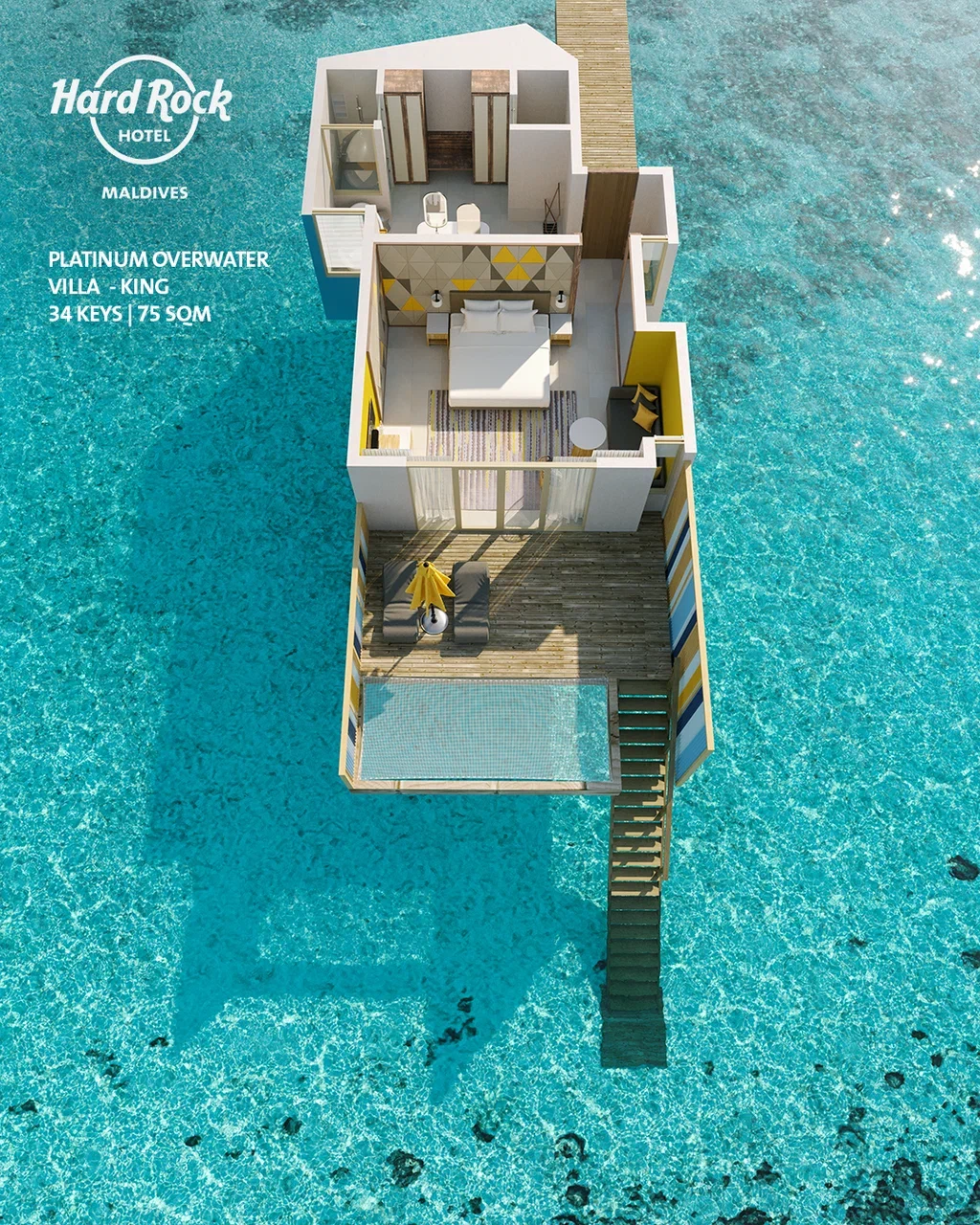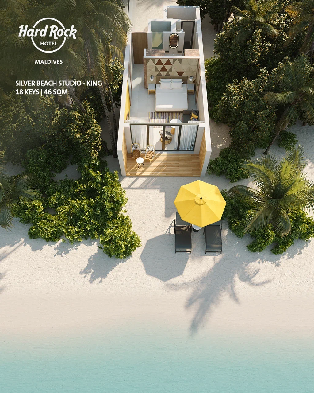 Входит в сеть Hard Rock Hotels. Размещение – в двухэтажном корпусе и на виллах на пляже и на воде. Интерьеры с яркими акцентами и фирменной графикой бренда. В каждом номере доступна программа Rock Om® для занятий йогой – коврик Manduka и видеоуроки. Также на всех виллах есть виниловые проигрыватели с подборкой пластинок.