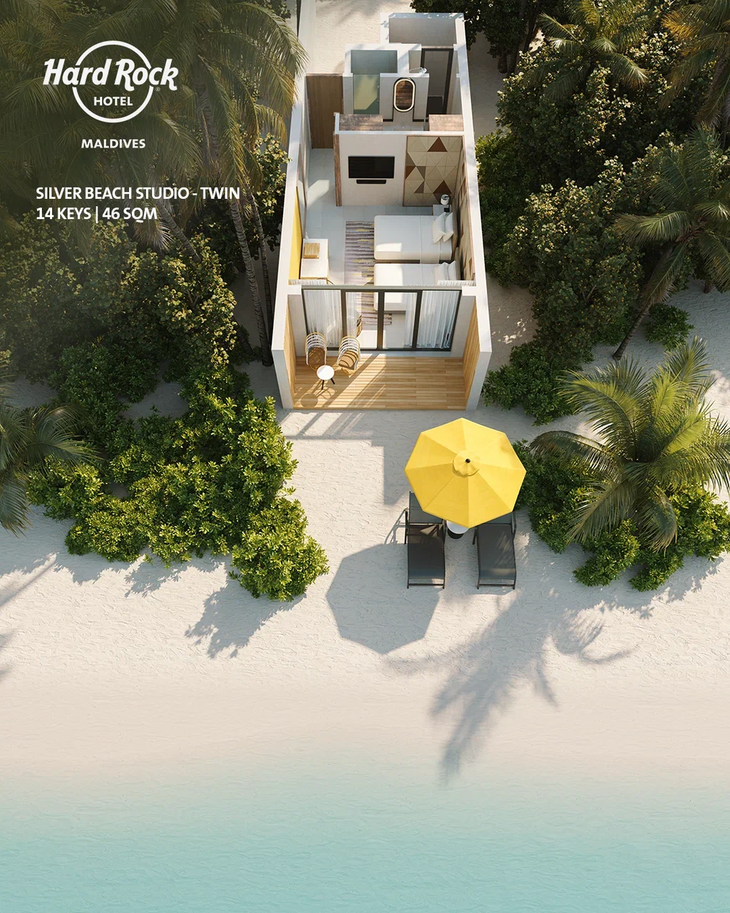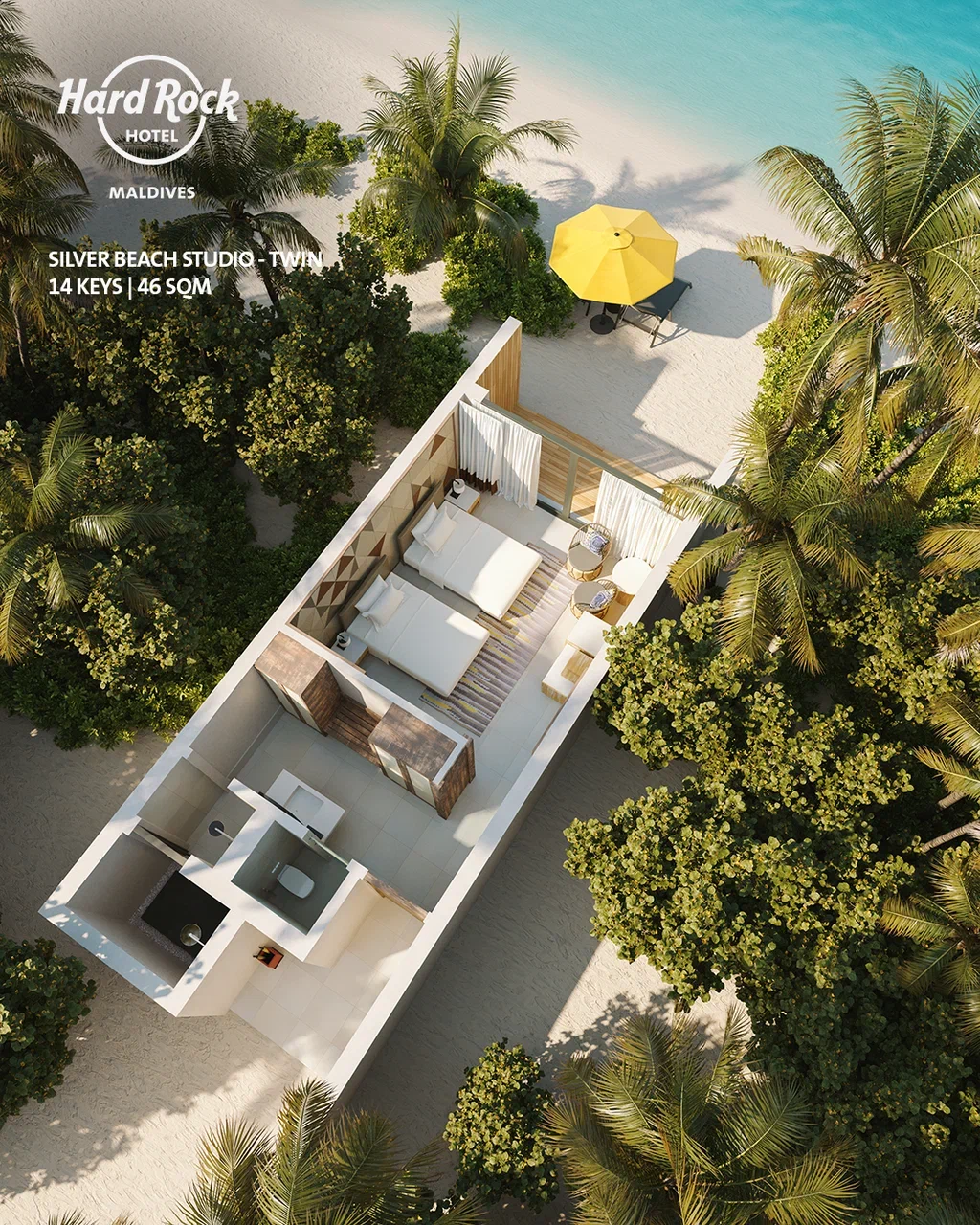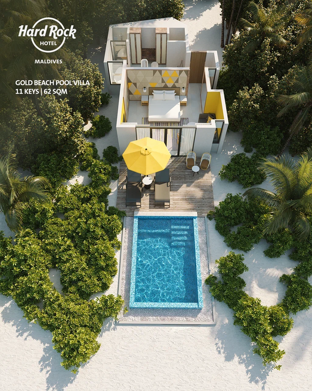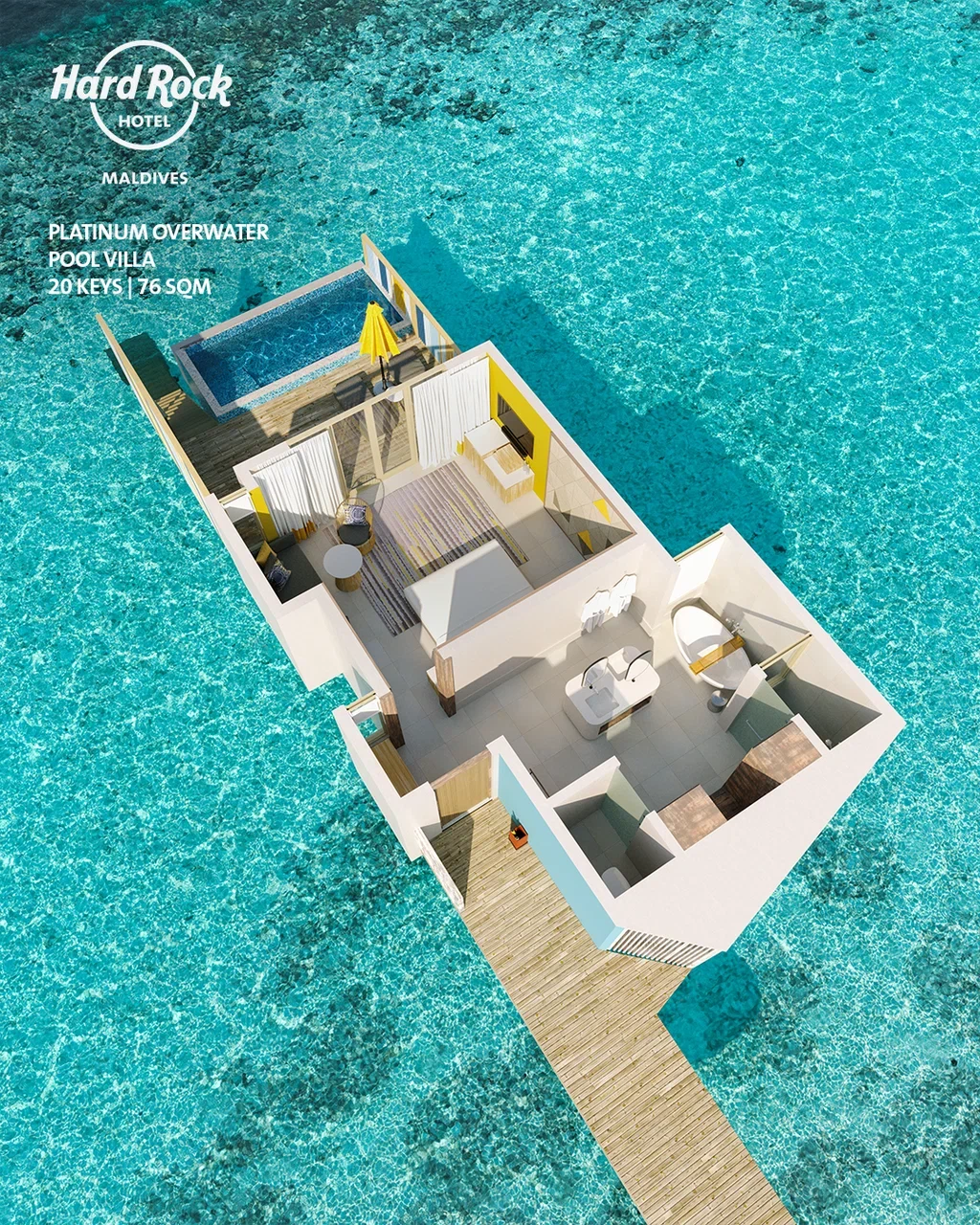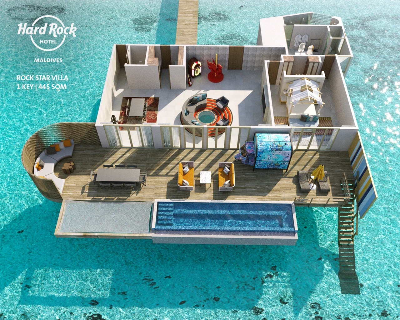 Входит в сеть Hard Rock Hotels. Размещение – в двухэтажном корпусе и на виллах на пляже и на воде. Интерьеры с яркими акцентами и фирменной графикой бренда. В каждом номере доступна программа Rock Om® для занятий йогой – коврик Manduka и видеоуроки. Также на всех виллах есть виниловые проигрыватели с подборкой пластинок.