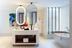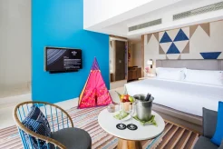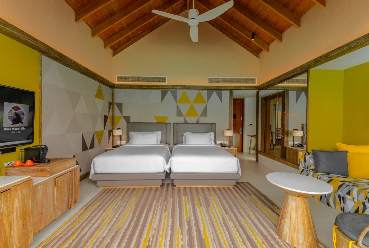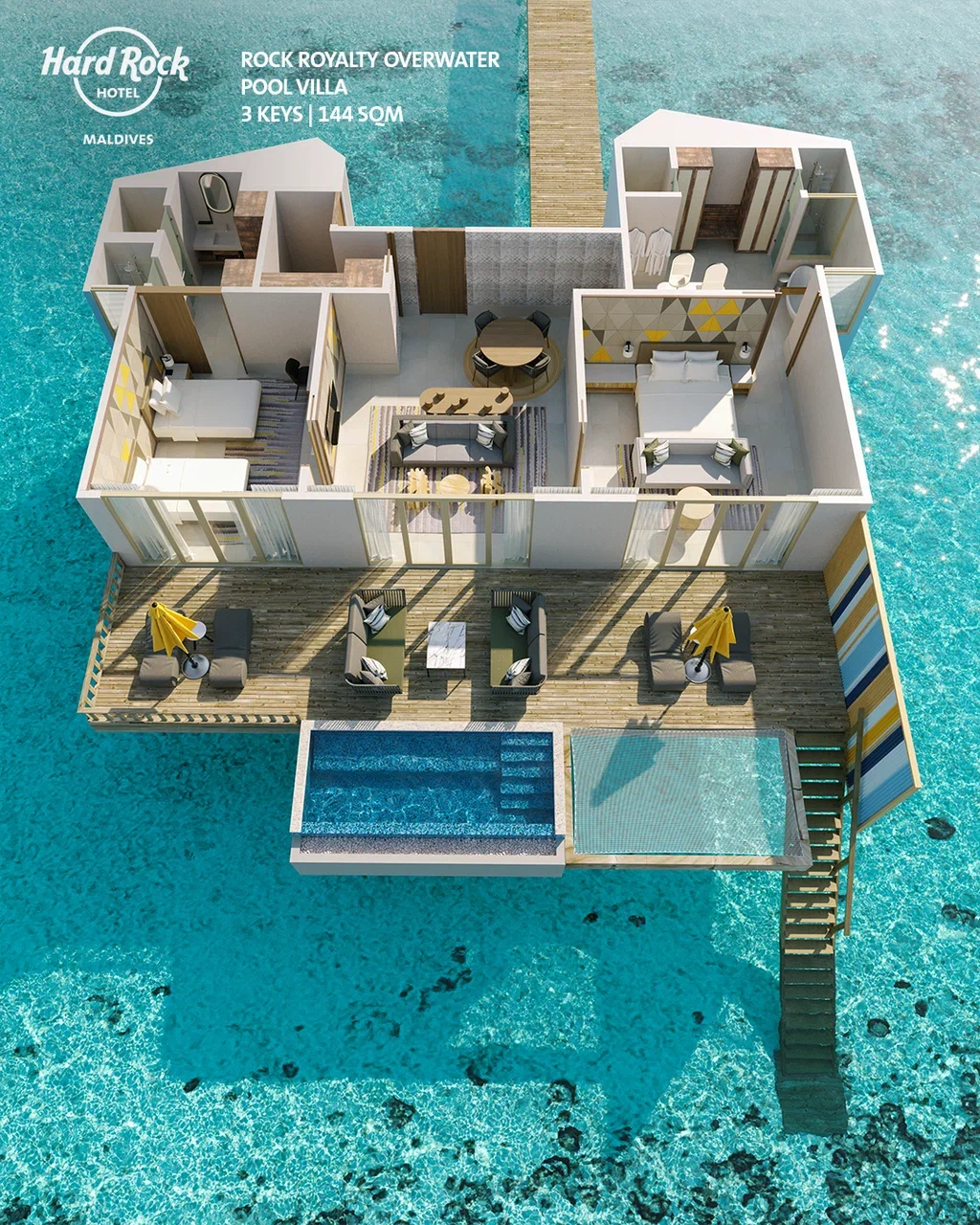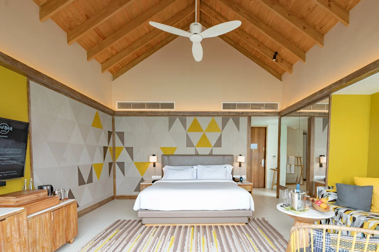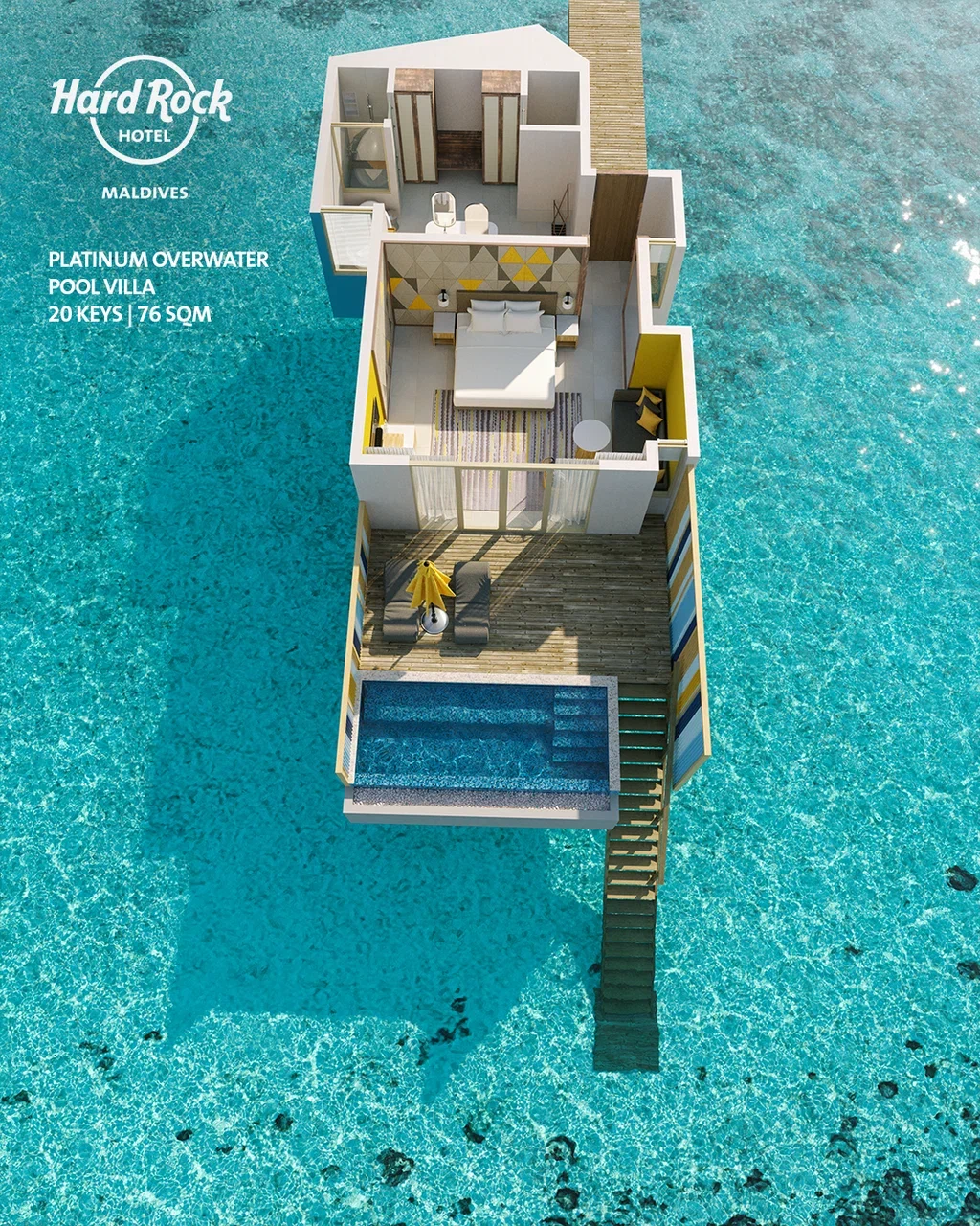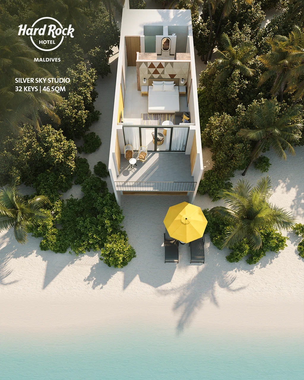 Входит в сеть Hard Rock Hotels. Размещение – в двухэтажном корпусе и на виллах на пляже и на воде. Интерьеры с яркими акцентами и фирменной графикой бренда. В каждом номере доступна программа Rock Om® для занятий йогой – коврик Manduka и видеоуроки. Также на всех виллах есть виниловые проигрыватели с подборкой пластинок.