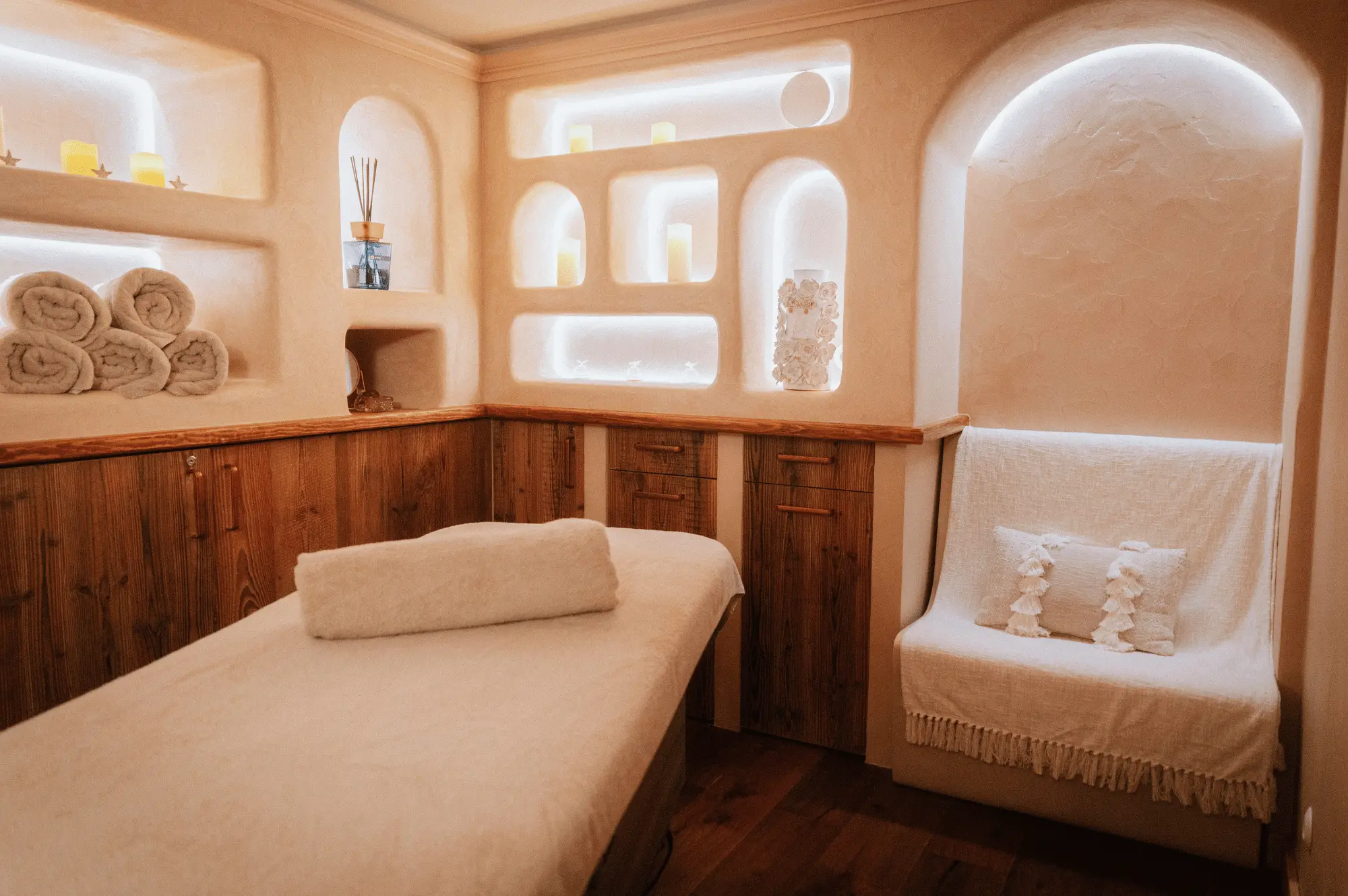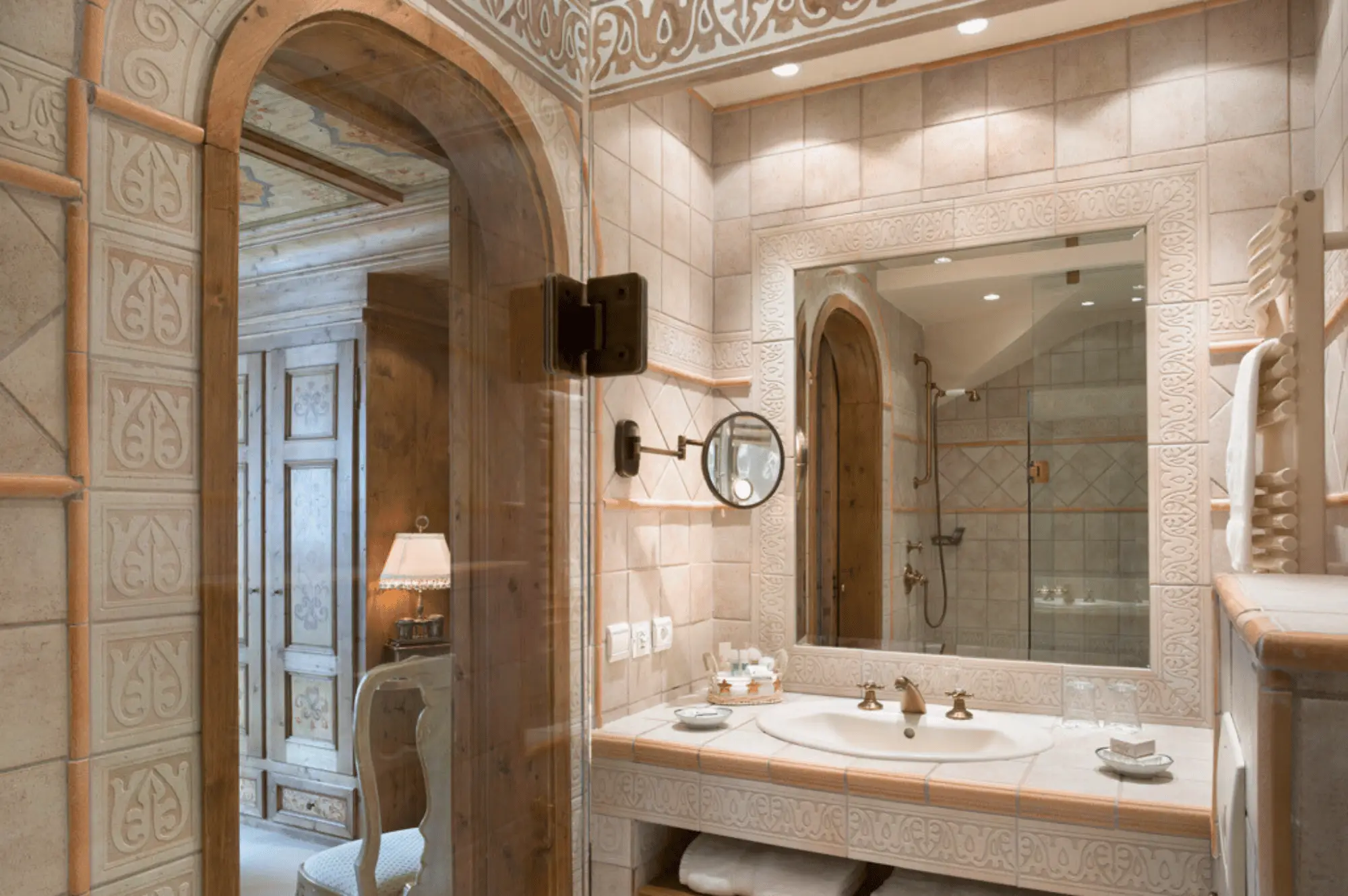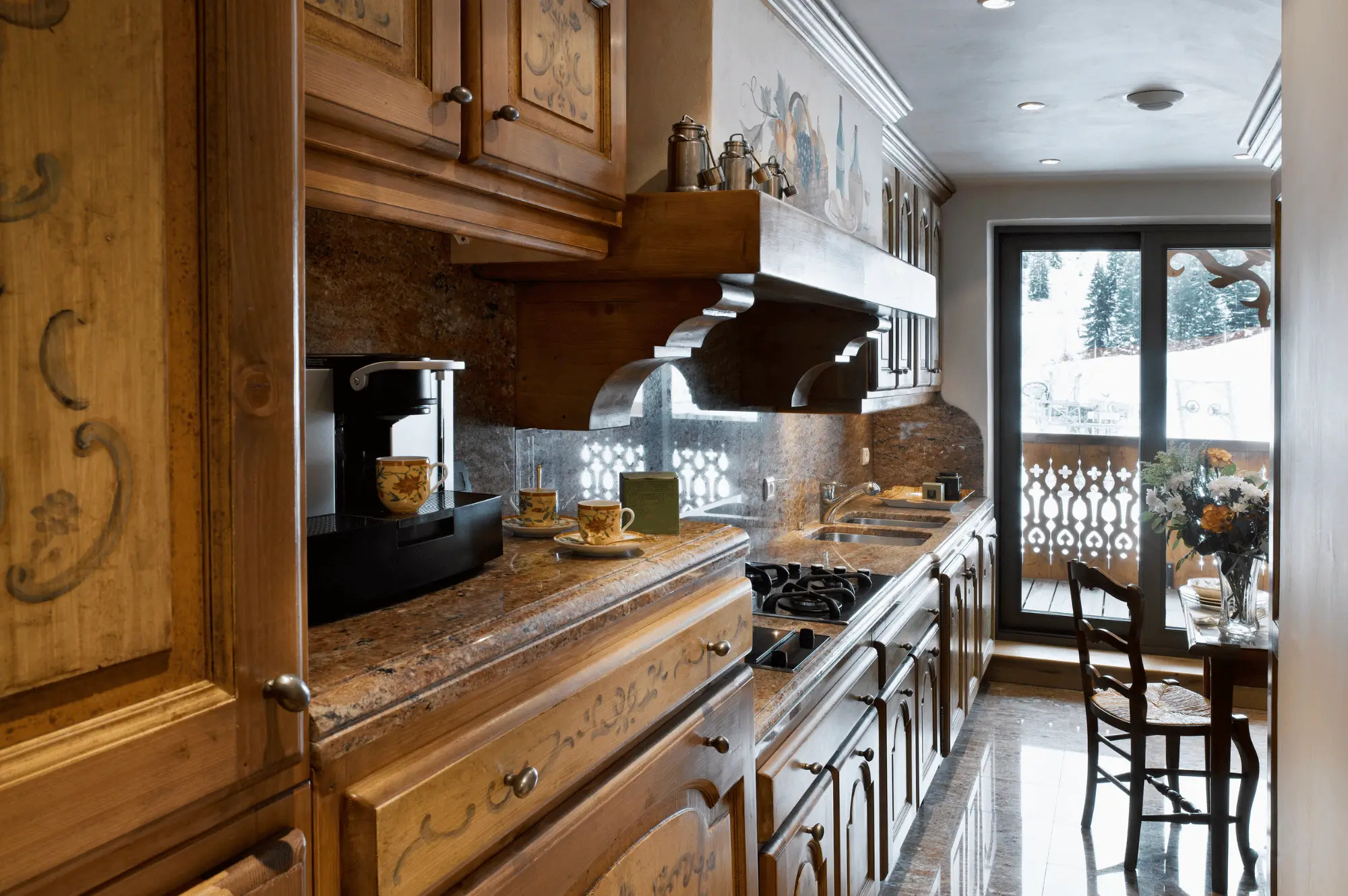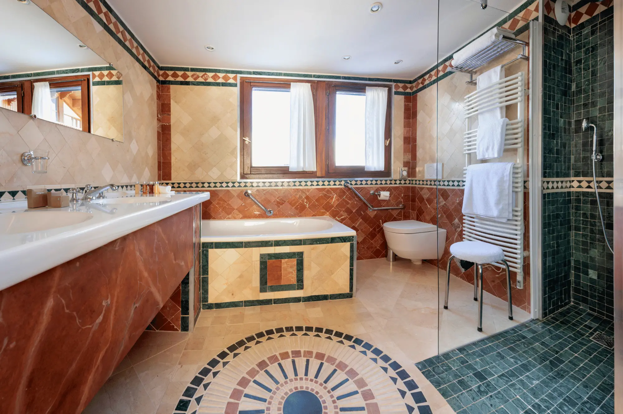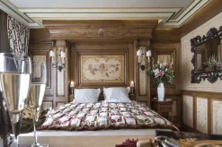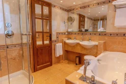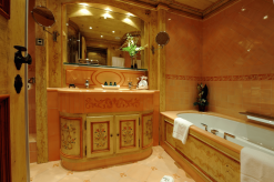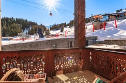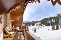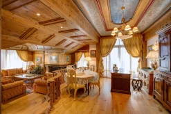 3 спальни с кроватями king-size, гостиная с камином и обеденной зоной, кухня, 3 гардеробные, 3 ванные комнаты (две – с ванной и душем-хаммамом, одна – с душем-хаммамом), 5 балконов, терраса, частный лифт. Вид на склоны.