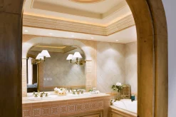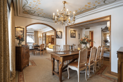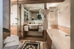 3 спальни с кроватями king-size, гостиная с камином и обеденной зоной (стол на 6 персон), кухня, 3 гардеробные, 3 ванные комнаты (две – c душем-хаммамом, одна – с ванной и душем-хаммамом), прачечная, 4 балкона, терраса, частный лифт.