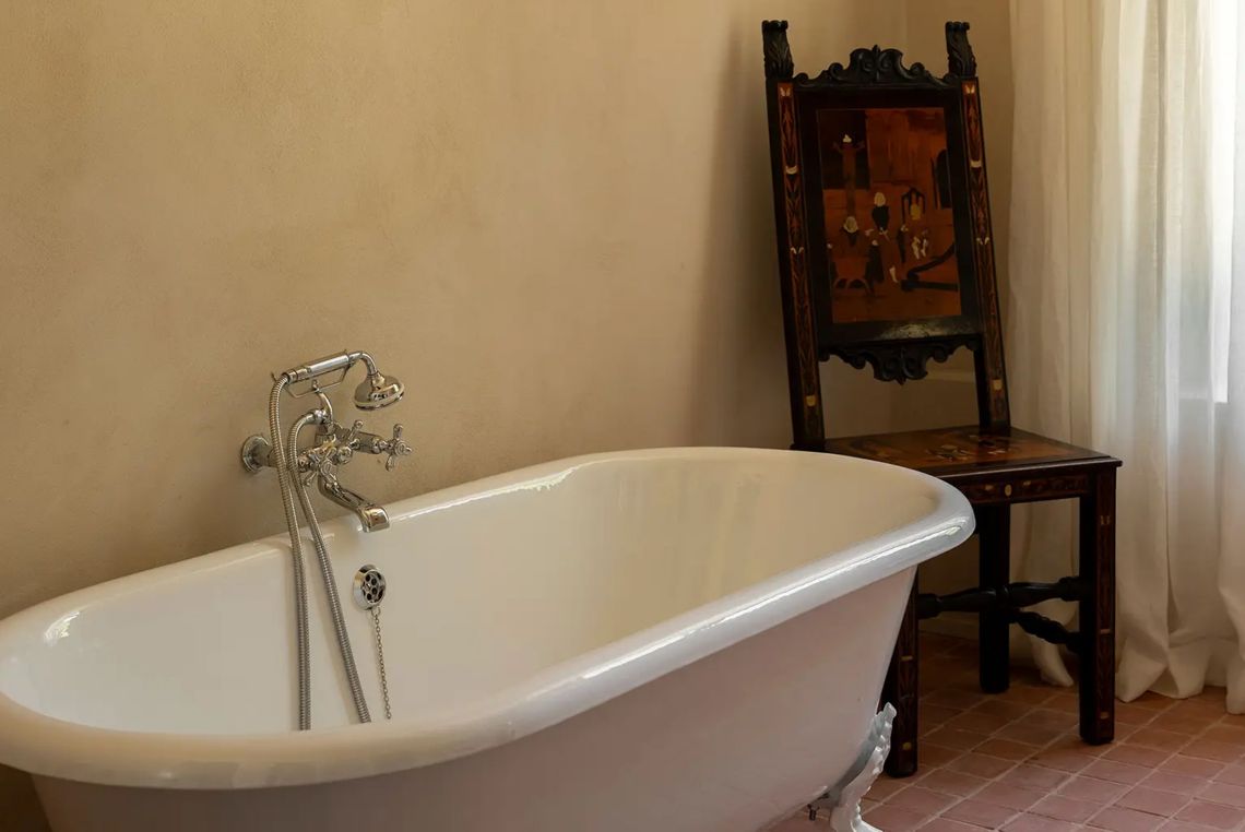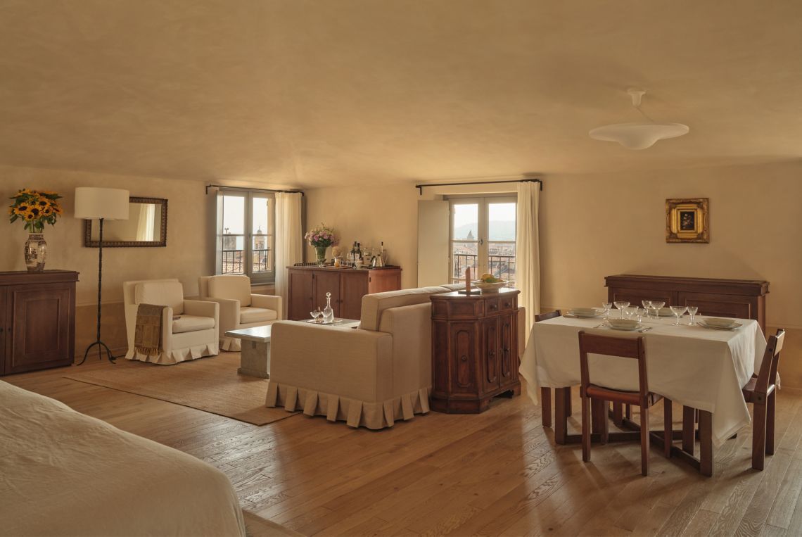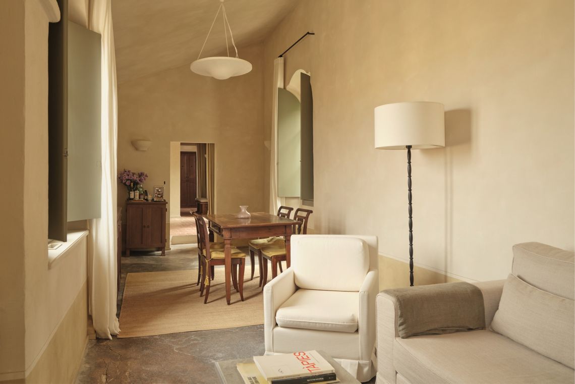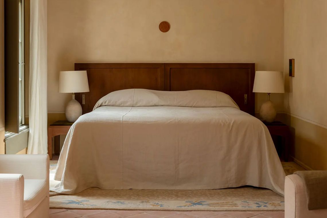 В номерах гостей встречают минималистичные, почти аскетичные интерьеры в природных тонах от студии Festen Architecture. Историчность поддерживают антикварные предметы мебели и элементы декора из разных эпох, каждый из которых несёт память о предыдущей жизни. Размеры номеров варьируются от скромных «келий» (отсылка к монастырскому прошлому здания) до просторных апартаментов с собственной кухней и столовой. Услуги батлера доступны по запросу.