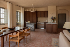 2 спальни с кроватями king-size, гостиная с обеденной зоной, кухня, 2 ванные комнаты (одна – с ванной и душевой кабиной, другая – с душевой кабиной), терраса. Гостиная и спальни разделены дверями. Прямой выход в сад.