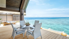 Вилла на воде. 4 спальни (три – с кроватью king-size, одна – с кроватями twin), гостиная с обеденной зоной, кухня, 4 ванные комнаты (три – с ванной и душевой кабиной, одна – с душевой кабиной), сауна, комната для спа-процедур, тренажёрный зал, терраса с обеденной зоной, гамаком над водой и частным открытым бассейном. Гостиная и спальни разделены дверями.