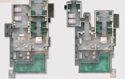 Вилла на берегу. 4 спальни (две – с кроватью king-size, две – с кроватями twin), 2 гостиные, 4 ванные комнаты (каждая с душевой кабиной), 2 ванны и 2 душа на открытом воздухе, 2 террасы, 2 частных открытых бассейна, обеденная зона на открытом воздухе. Гостиная и спальни разделены дверями.