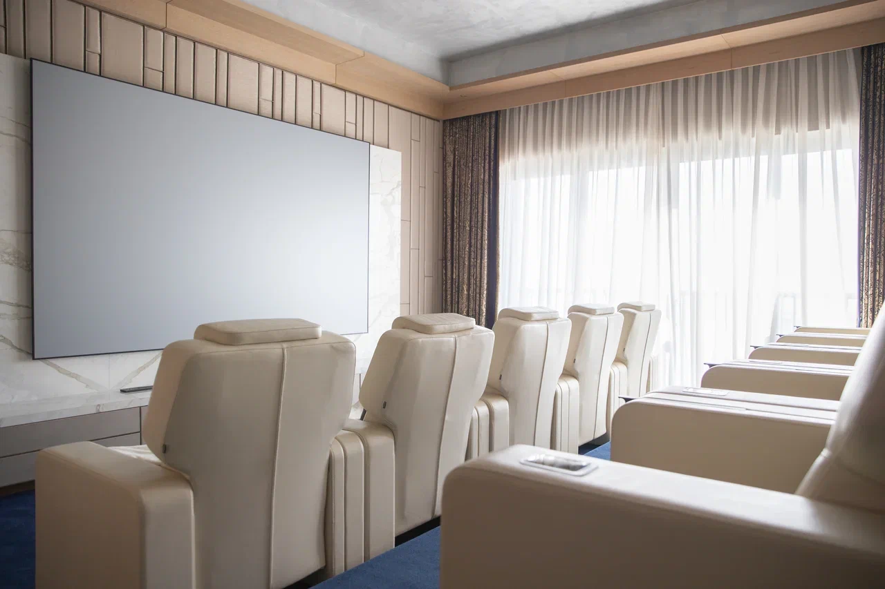 2 спальни с кроватями king-size, гостиная с обеденной зоной (стол на 10 персон), кухня, 2 гардеробные, тренажёрный зал, ТВ-комната с видеоиграми, кинотеатр, 2 ванные комнаты (каждая с ванной и душевой кабиной), гостевой туалет, 2 балкона, терраса с зоной отдыха и обеденной зоной на открытом воздухе (стол на 8 персон). Гостиная и спальни разделены дверями.