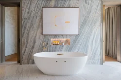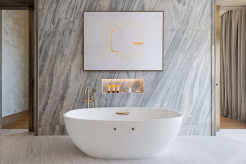 Спальня с кроватью king-size, гостиная, 2 ванные комнаты (одна – с ванной и душевой кабиной, другая – с душевой кабиной), терраса. Гостиная и спальня разделены дверью.