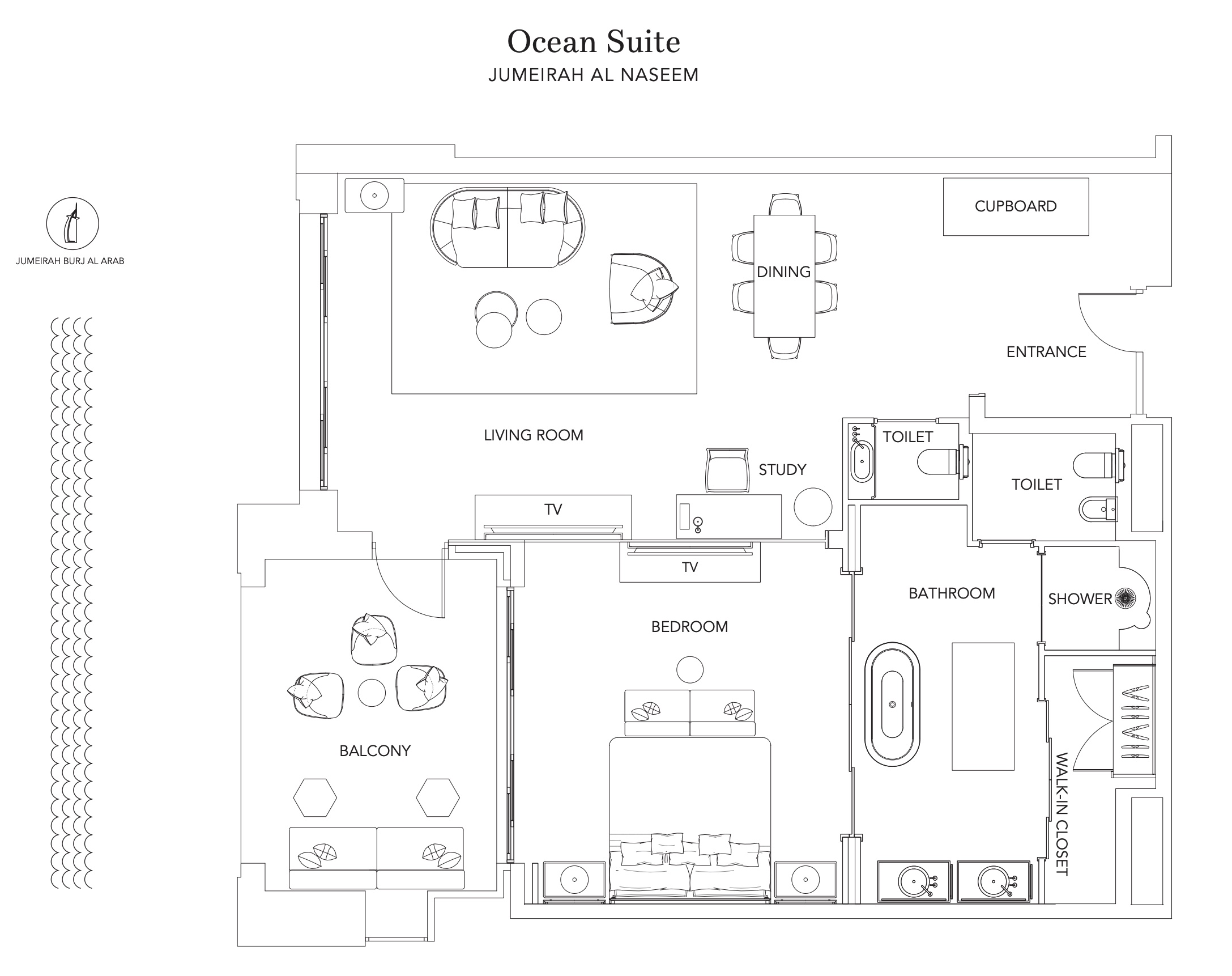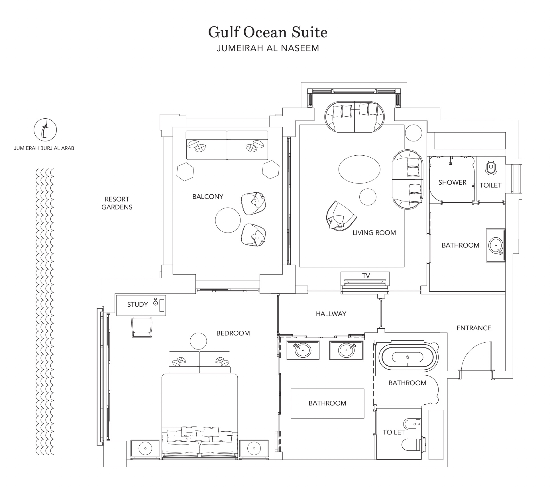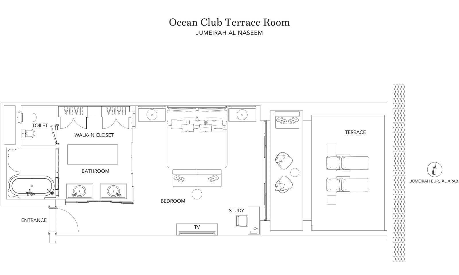 Возможно объединение с номерами категорий Ocean Deluxe, Ocean Club Superior, Family Suite, Ocean Suite, Gulf Ocean Suite, Burj View Suite.