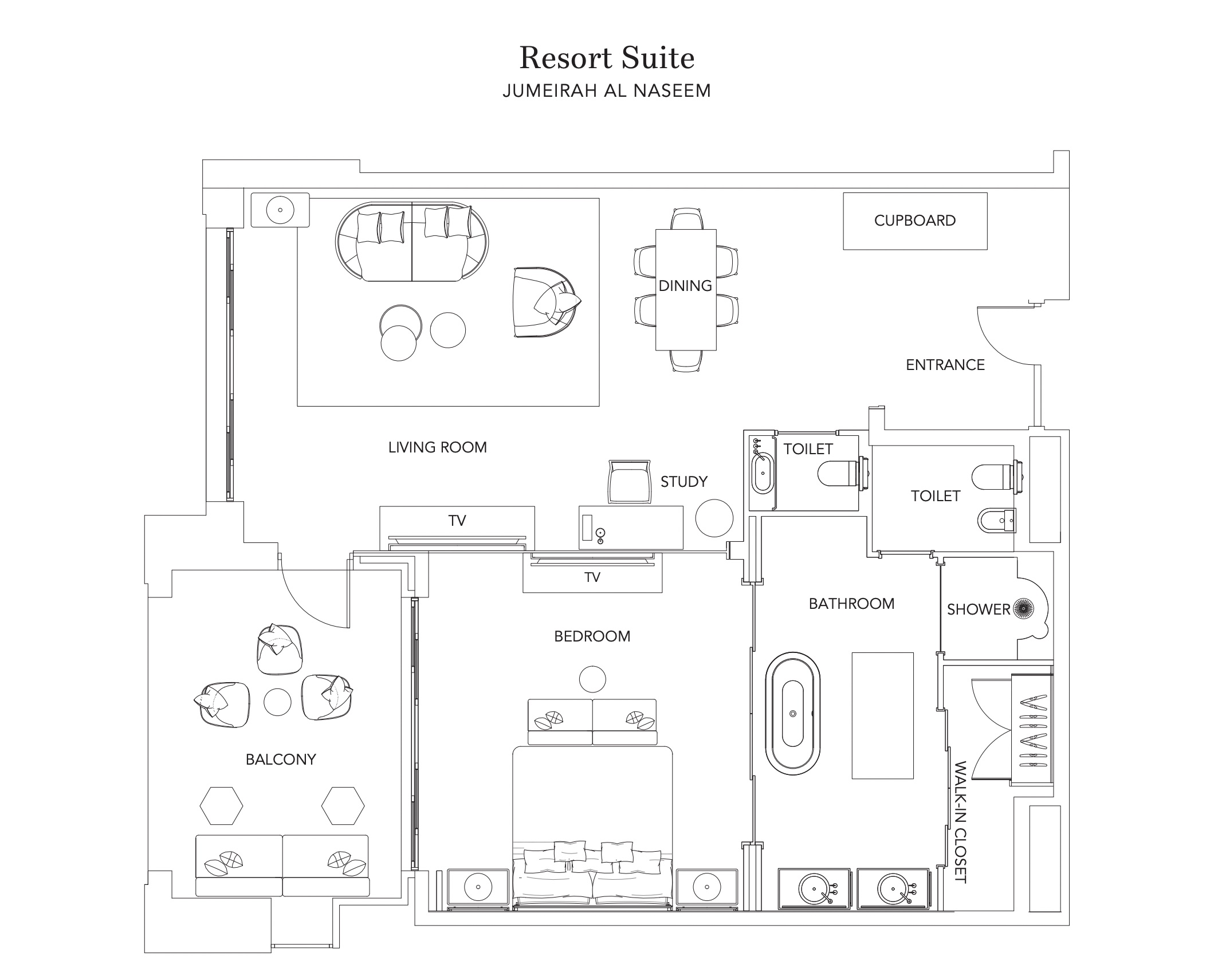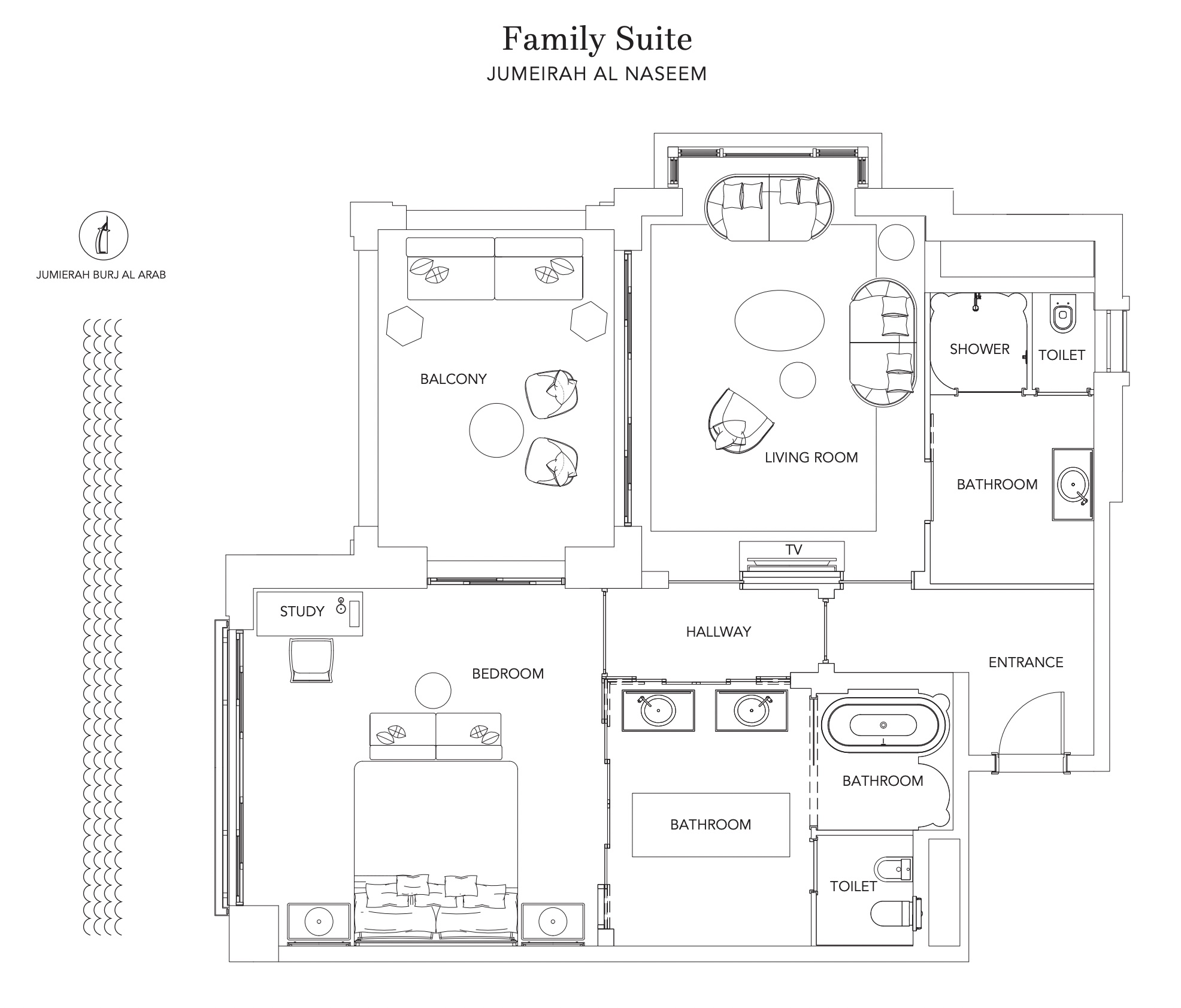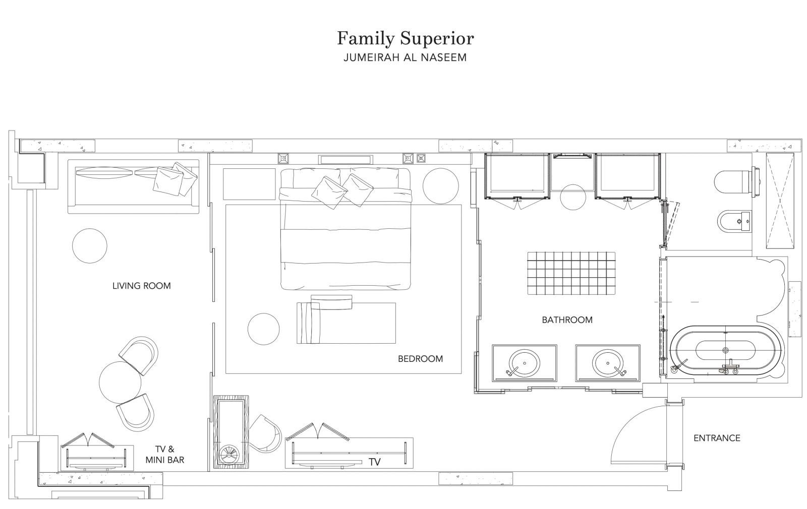 Возможно объединение с номерами категорий Resort Deluxe, Family Superior, Family Suite, Resort Suite, Burj View Suite.