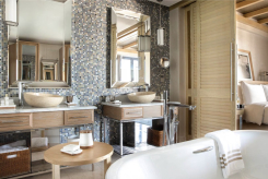 Спальня с кроватью king-size, гостиная, 2 ванные комнаты (одна – с ванной и душевой кабиной, другая – с душевой кабиной), терраса с беседкой и обеденной зоной на открытом воздухе. Гостиная и спальня разделены дверью.