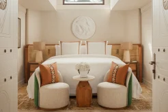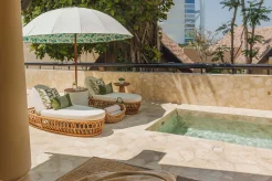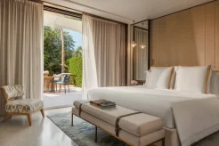 Вилла в саду. 3 спальни (две – с кроватями king-size, одна – с кроватями twin), гостиная с обеденной зоной, 3 ванные комнаты (каждая с ванной и душевой кабиной), терраса с бассейном. Гостиная и спальни разделены дверями.