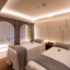 2 спальни (одна – с кроватью king-size, другая – с кроватями twin), гостиная с обеденной зоной, 2 ванные комнаты (каждая с ванной и душевой кабиной), терраса с зоной отдыха. Гостиная и спальни разделены дверями.