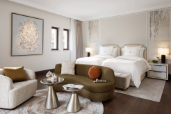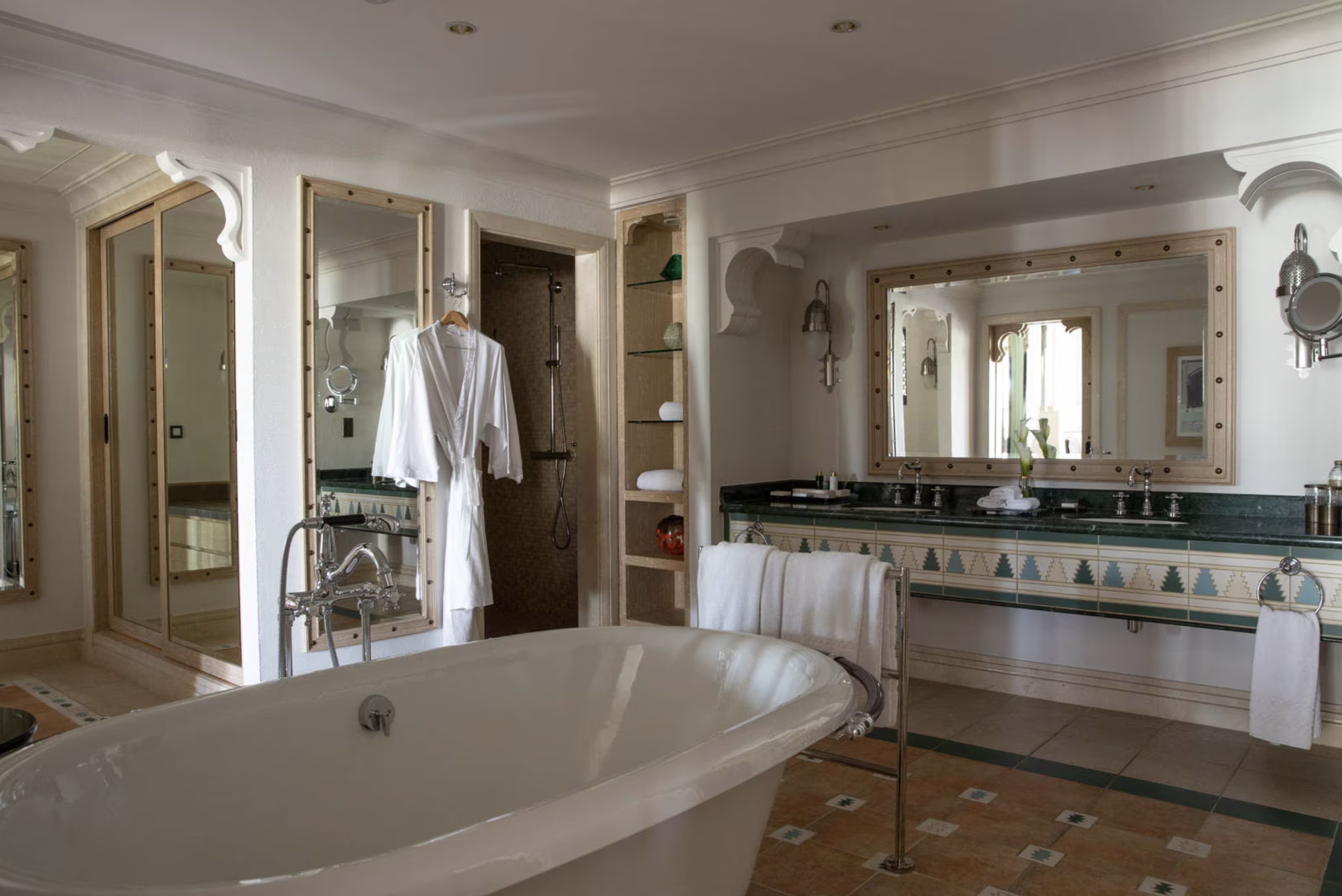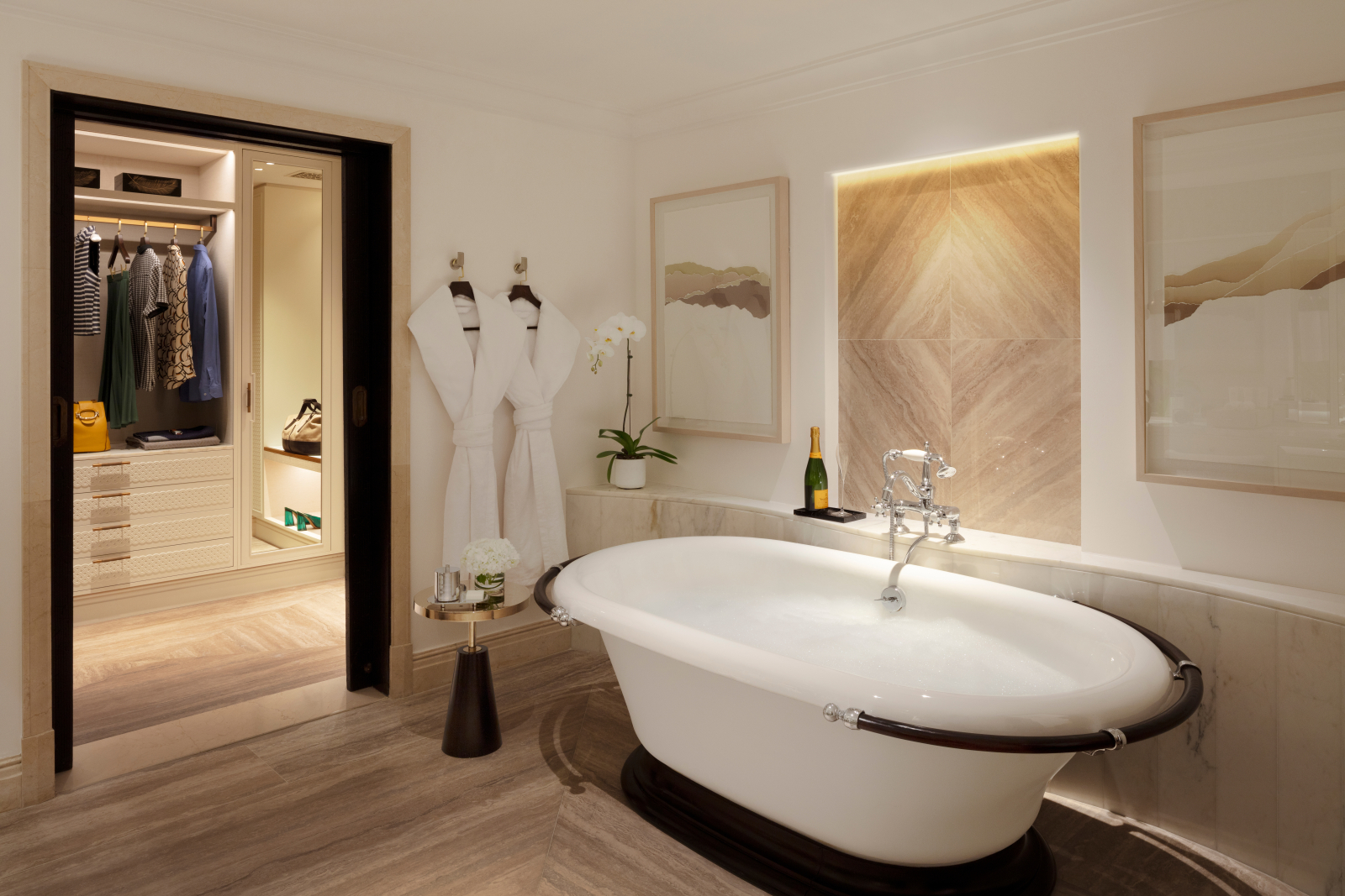 Спальня с кроватью king-size или кроватями twin, гостиная зона, гардеробная, ванная комната с ванной и душевой кабиной, балкон.