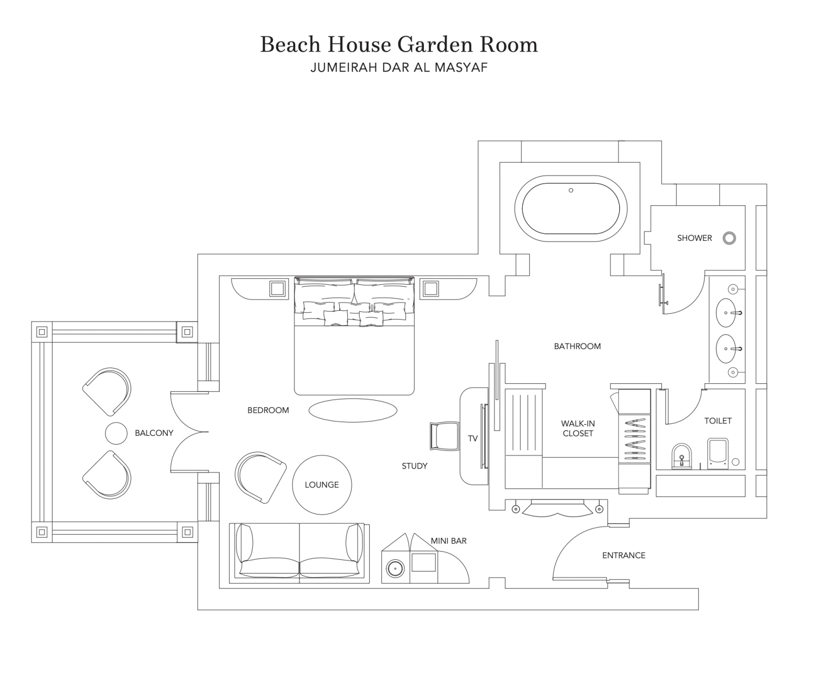 292 номера, 10 ресторанов, бар, частный песчаный пляж, пляжный клуб, открытый бассейн, крытый бассейн, спа-центр, тренажёрный зал, студия йоги и пилатеса, центр водных видов спорта, корт для падел-тенниса, 4 корта для тенниса, детский клуб, 2 банкетных или конференц-зала. Гостям предоставляется бесплатный доступ в аквапарк Wild Wadi Waterpark.