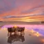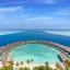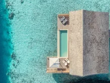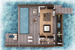 Вилла на воде. 2 спальни (одна – с кроватью king-size и гостиной открытой планировки, другая – с кроватью king-size), 2 ванные комнаты (одна – с ванной и душевой кабиной, другая – с душевой кабиной), душ на открытом воздухе, терраса с бассейном, качелями и обеденной зоной. Прямой спуск к воде. Гостиная и одна из спален разделены дверью.