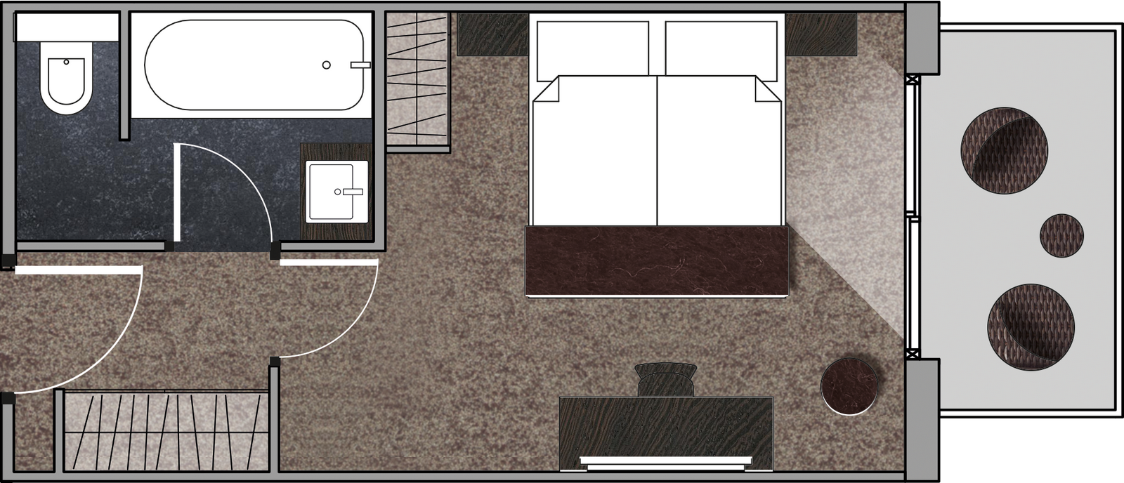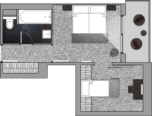 2 спальни (одна – с кроватью king-size или кроватями twin, другая – с кроватью single), ванная комната с ванной и/или душевой кабиной, балкон (в некоторых номерах).