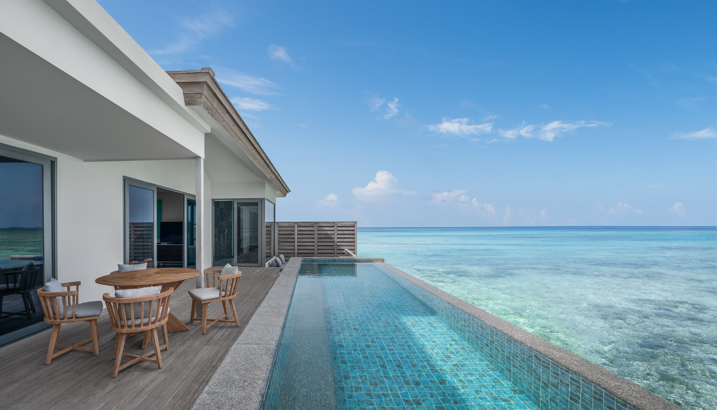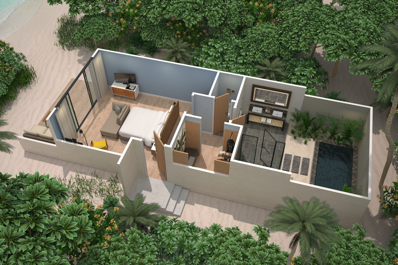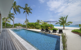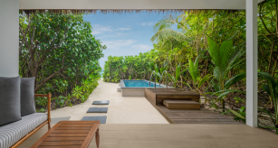 Вилла на берегу. 2 спальни (одна – с кроватью king-size, другая – с кроватью king-size или кроватями twin), 2 гостиные зоны, 2 гардеробные, 2 ванные комнаты (каждая с душевой кабиной), 2 душа на открытом воздухе, терраса c бассейном.