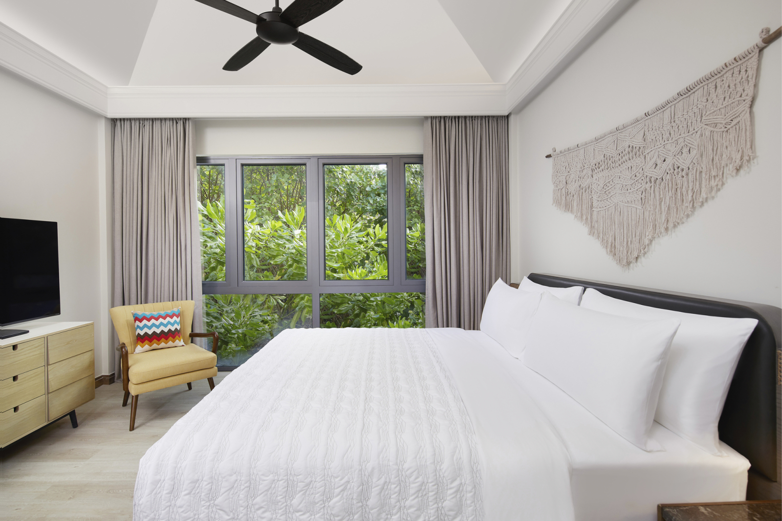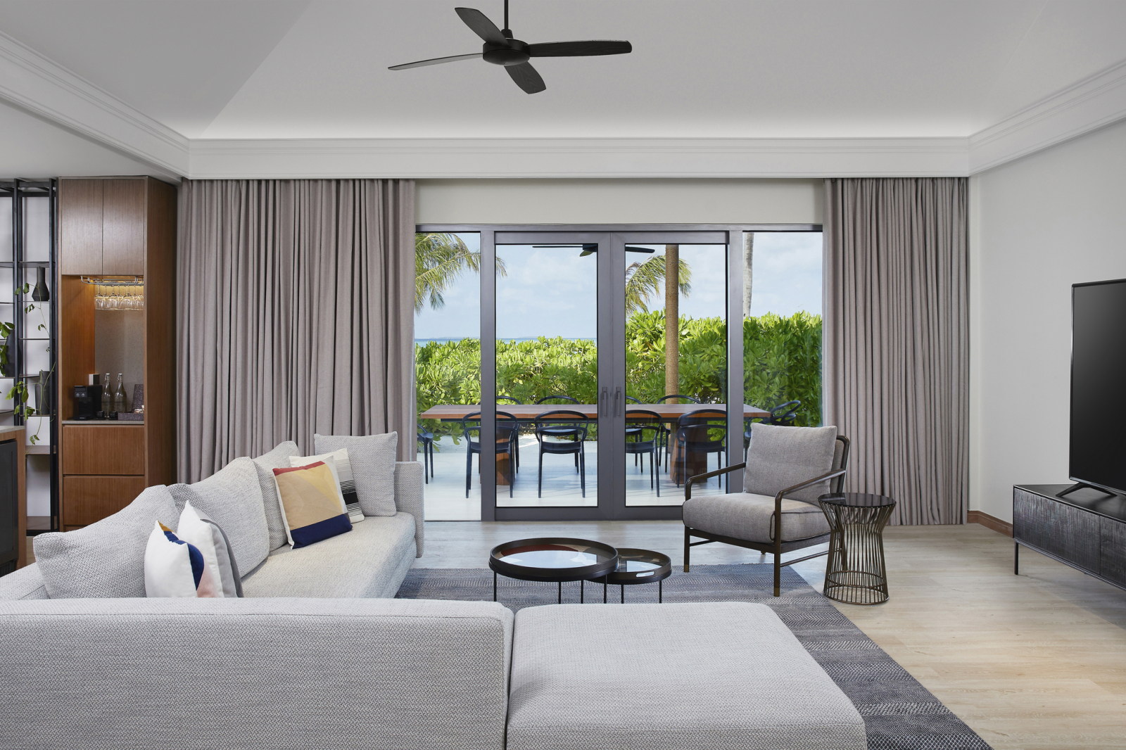 Входит в сеть Marriott. В интерьерах вилл, расположенных на пляже и на воде, мальдивский шик сочетается с ностальгическим очарованием Французской Ривьеры 1960-х годов. Туалетные принадлежности – Malin+Goetz.