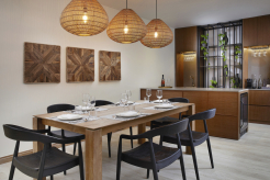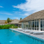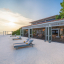 Вилла на берегу. 3 спальни с кроватями king-size, гостиная с обеденной зоной, кухня, 3 гардеробные, 3 ванные комнаты (две – с душевой кабиной, одна – с ванной и душевой кабиной), терраса c обеденной зоной (стол на 10 персон) под навесом, бассейном и джакузи на открытом воздухе. Гостиная и спальни разделены дверями.