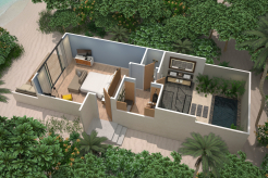 Вилла на берегу. Спальня с кроватью king-size и гостиной зоной, гардеробная, ванная комната с душевой кабиной, открытый бассейн во внутреннем дворике, терраса.