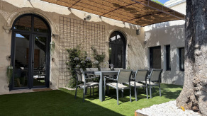 Вилла в саду. 4 спальни с кроватями king-size, гостиная, столовая, кухня, винный погреб, 4 ванные комнаты, патио с обеденной зоной на открытом воздухе, терраса с бассейном, зона барбекю, парковка.