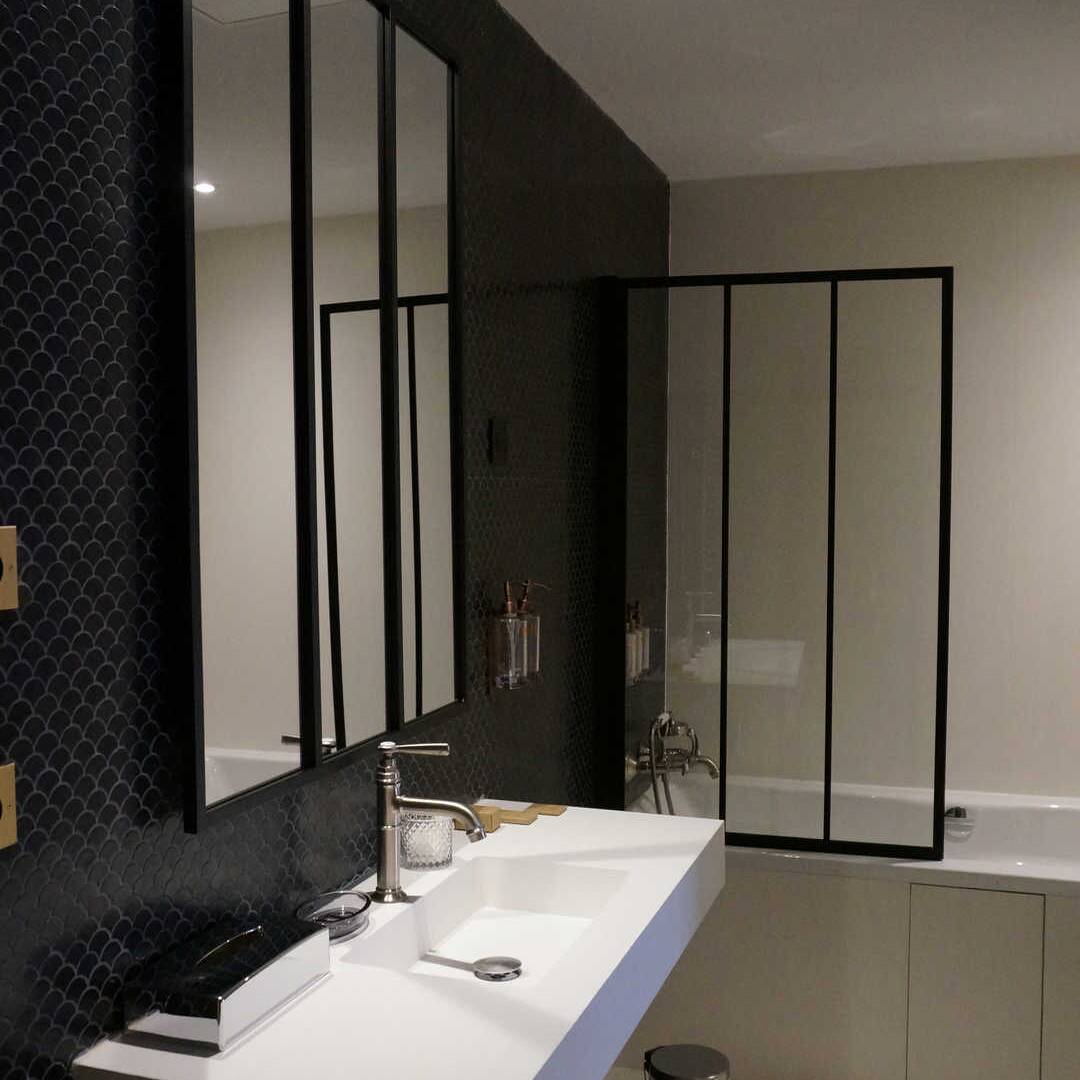 Спальня с кроватью king-size, гостиная зона, ванная комната с ванной и душевой кабиной.