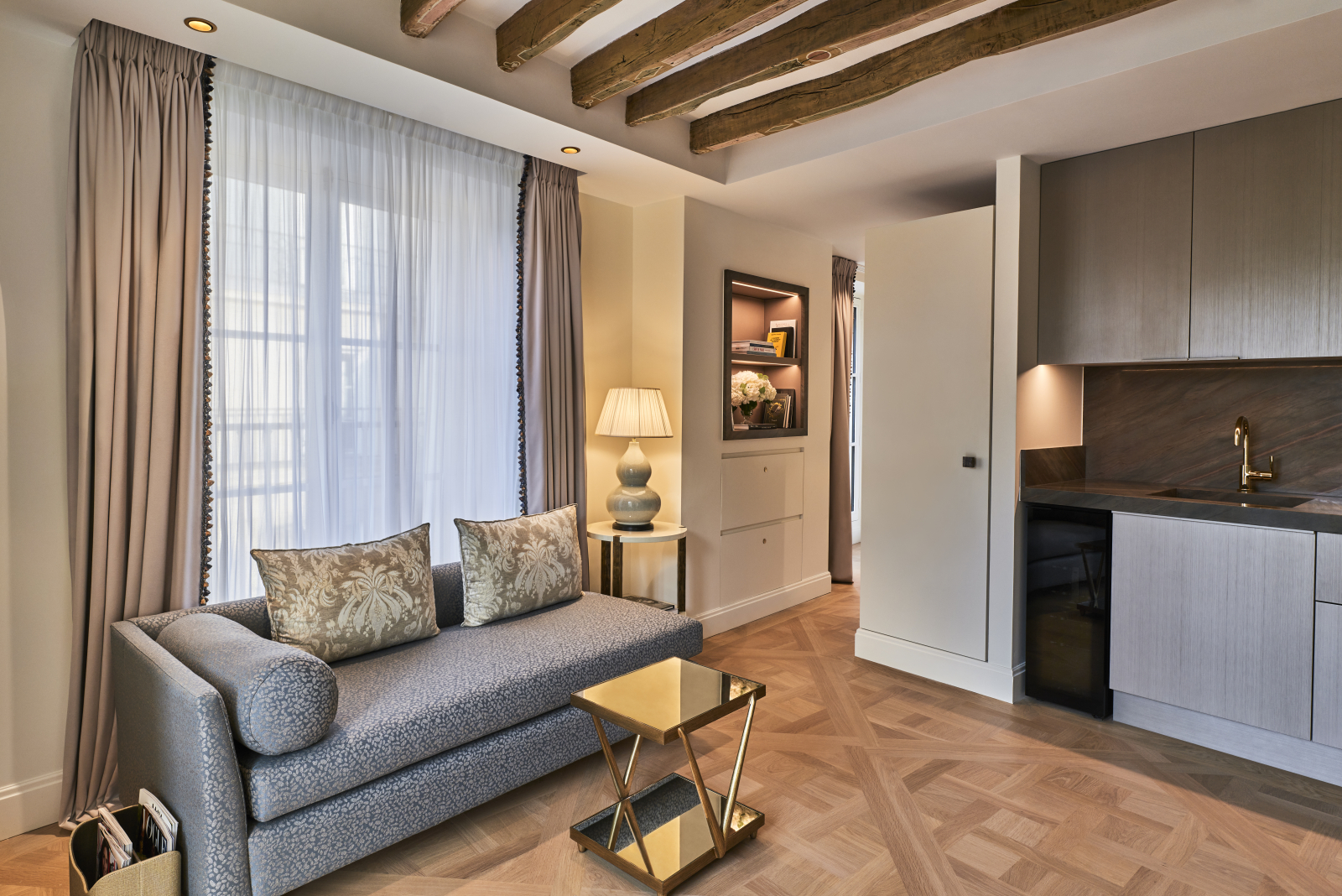 Отель входит в престижную группу Barrière. Здание, окружённое бутиками домов мод, открылось после масштабной восьмилетней реконструкции в январе 2025 года. Общую концепцию проекта разработала основательница дома «этичных» ювелирных украшений Goralska Коринн Эвенс. Архитектор и дизайнер Даниэль Жибер посвятил интерьер каждого из 26 номеров выдающейся женщине: Жорж Санд, Марлен Дитрих, Саре Бернар, Симоне де Бовуар и другим. В отделке использованы эксклюзивные ткани Pierre Frey, хрустальный декор Lalique, а стены расписаны вручную художниками из парижской мастерской Atelier de Ricou. Туалетные принадлежности от парфюмерного дома с двухсотлетней историей Guerlain. Всем гостям предоставляются услуги батлера.