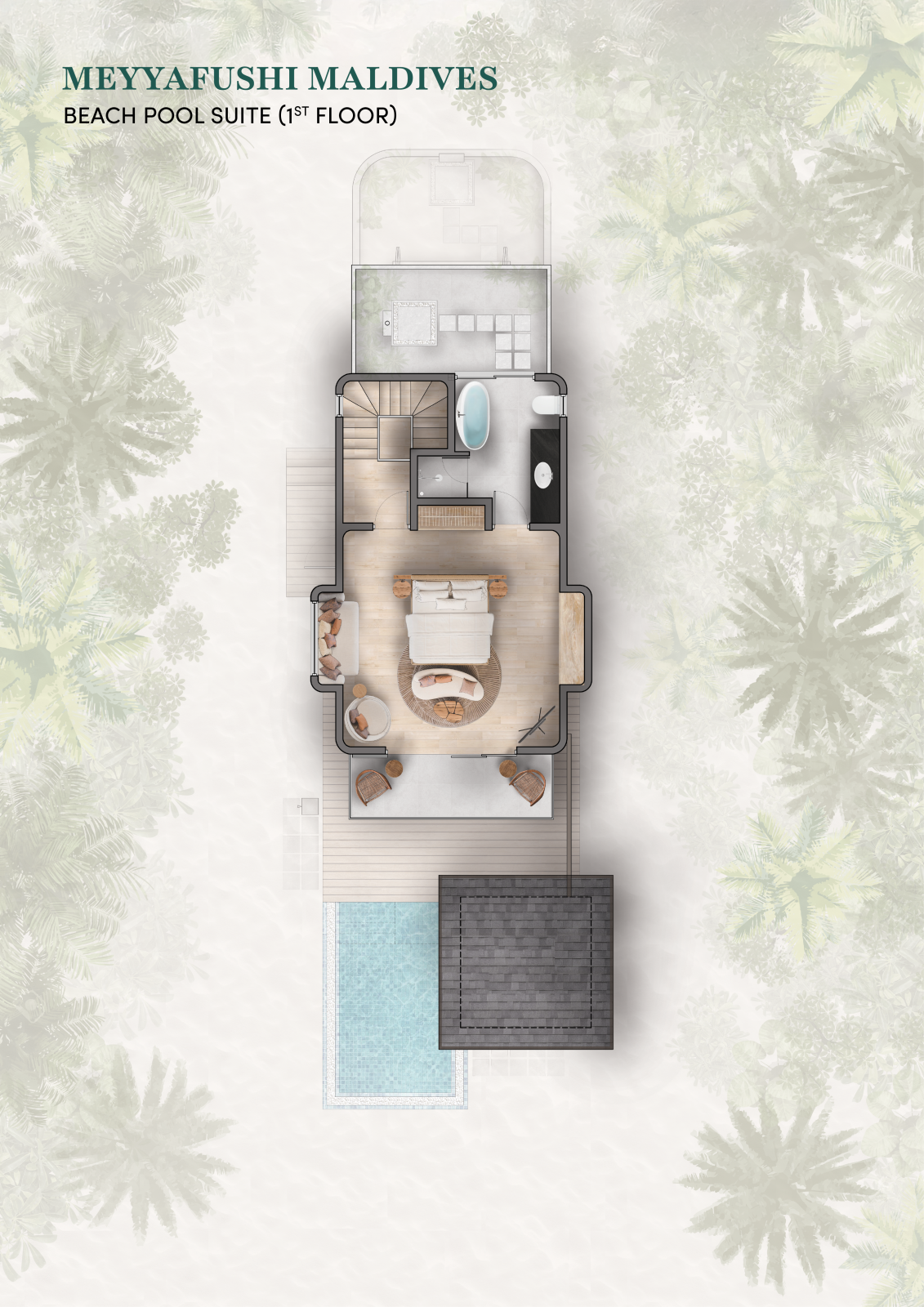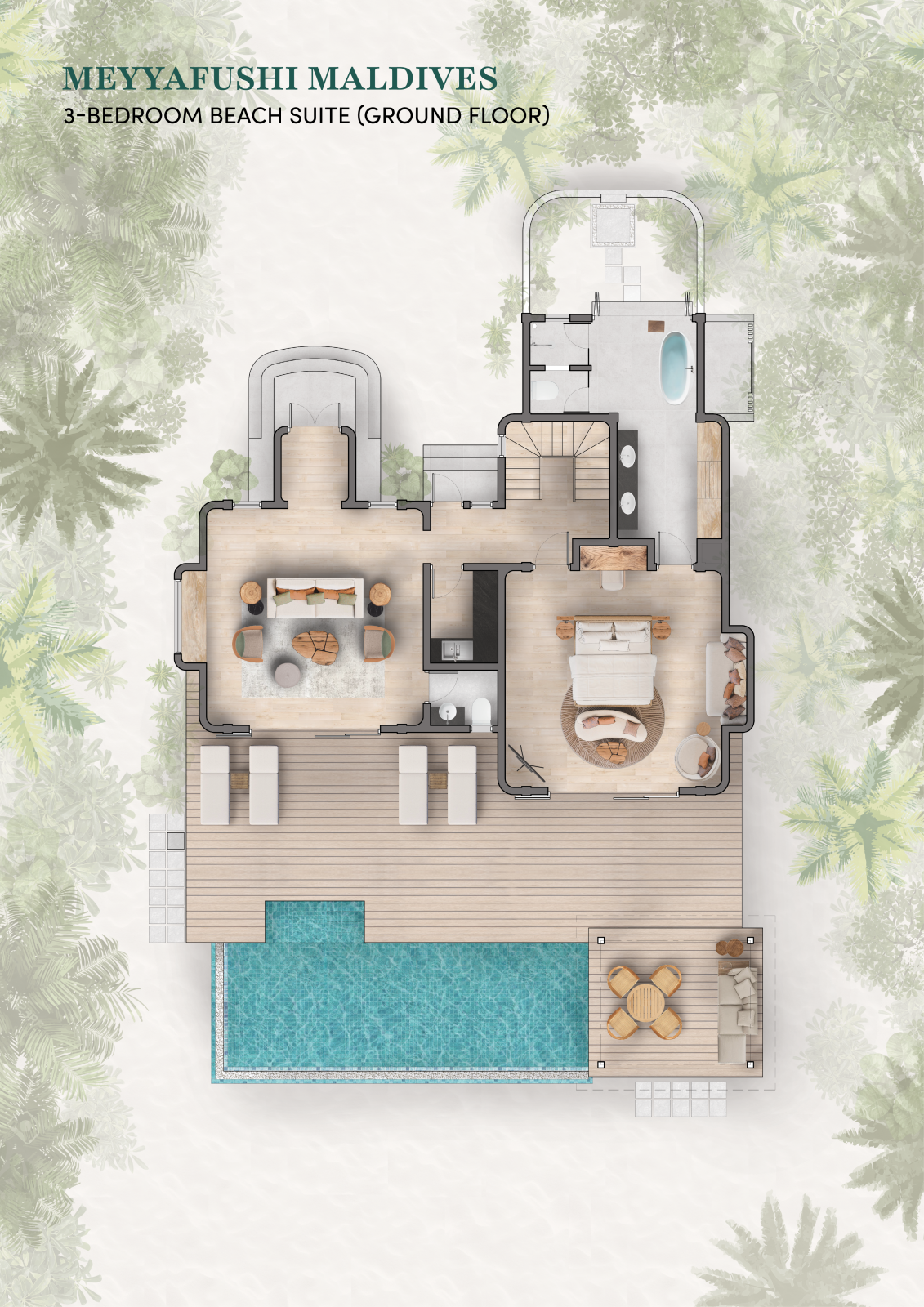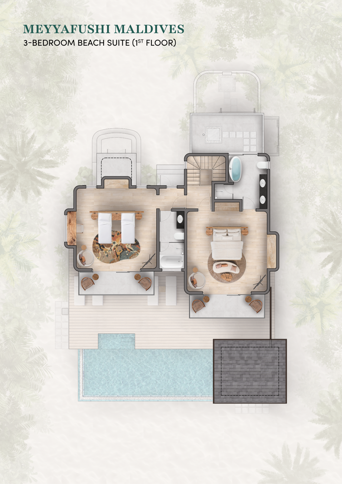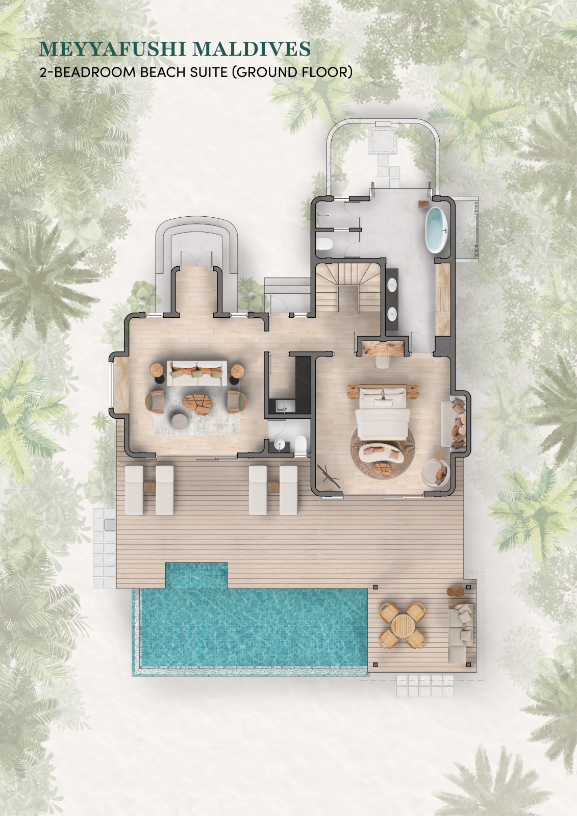 Вилла расположена частично на берегу, частично на воде. 2 спальни (одна – с кроватью king-size, другая – с кроватями twin), 2 ванные комнаты (каждая с ванной и душем), терраса с бассейном, водной горкой и прямым спуском к воде.