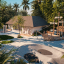 На 1-м этаже: спальня с кроватью king-size, гостиная, кухня, ванная комната с ванной и душем, гостевой туалет, терраса с бассейном. Гостиная и спальня разделены дверью.