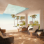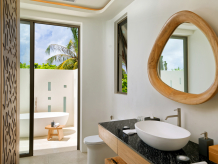 Вилла на берегу. Спальня с кроватью king-size, ванная комната с ванной и душем, терраса с бассейном.