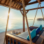 Вилла на берегу. Спальня с кроватью king-size, гостиная, гардеробная, ванная комната с ванной, душ на открытом воздухе, беседка на крыше, терраса с бассейном. Гостиная и спальня разделены дверью.