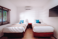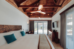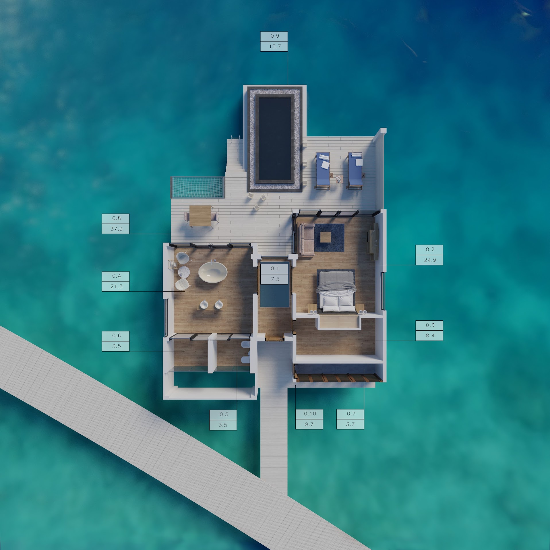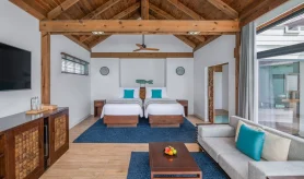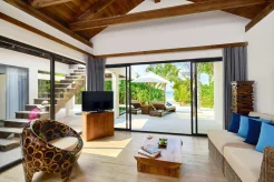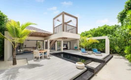 Вилла на берегу. 3 спальни (две – с кроватью king-size, одна – с кроватями twin), гостиная с обеденной зоной (на некоторых виллах – на 2-м этаже), 3 ванные комнаты (две – с ванной и душевой кабиной, одна – с душевой кабиной), комната для спа-процедур, терраса с бассейном, на некоторых виллах – джакузи на открытом воздухе. Гостиная и спальни разделены дверями.