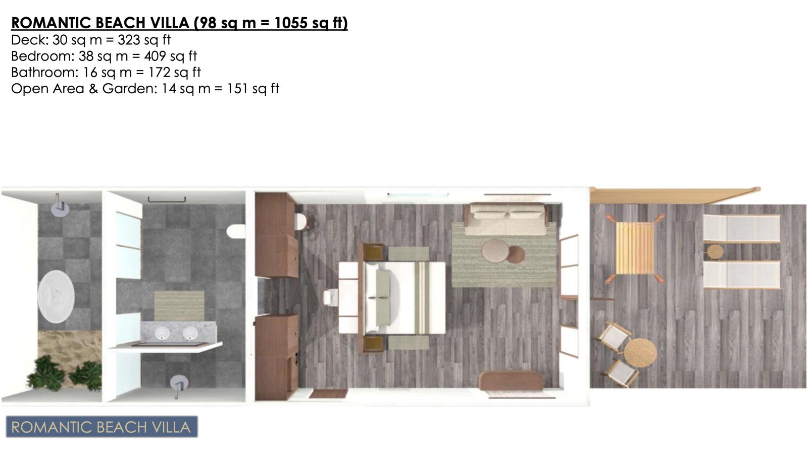 Вилла на берегу. Спальня с кроватью king-size, гостиная зона, ванная комната с душевой кабиной, частный сад с душем на открытом воздухе, терраса. Прямой доступ к пляжу.