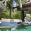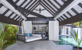 Вилла на берегу. Спальня с кроватью king-size, гостиная зона, гардеробная, ванная комната с ванной и душевой кабиной, душ на открытом воздухе, терраса с бассейном и качелями, беседка с обеденной зоной.