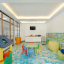 На 1-м этаже: гостиная, ванная комната с душевой кабиной и джакузи частично на открытом воздухе, душ на открытом воздухе, терраса с бассейном.