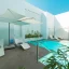 Спальня с кроватью king-size, ванная комната с ванной и душевой кабиной, терраса с прямым доступом к бассейну.