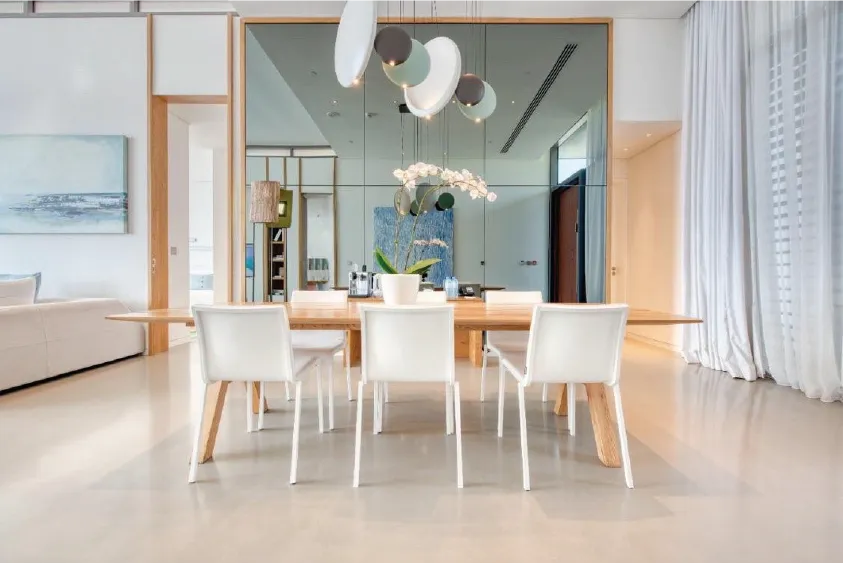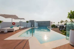 3 спальни (одна – с кроватью super king-size, две – с кроватями king-size), гостиная с обеденной зоной (стол на 16 персон), кухня, 3 ванные комнаты (каждая с ванной и душевой кабиной), 2 гостевых туалета, бильярд, настольный футбол, 3 балкона, терраса с инфинити-бассейном, джакузи, баром и зоной отдыха. Гостиная и спальни разделены дверями. Отдельный лифт, парковка, прямой доступ к пляжу.