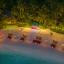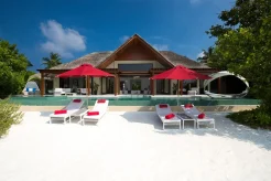 2 острова – Play и Chill, 134 виллы, 7 ресторанов, 2 бара, 2 открытых бассейна, спа-центр, тренажёрный зал, центр водных видов спорта, дайвинг-центр, снорклинг, теннисный корт, детский клуб, игровая комната с настольными играми (теннис, бильярд), прокат велосипедов, библиотека, кинотеатр под открытым небом, бутик.