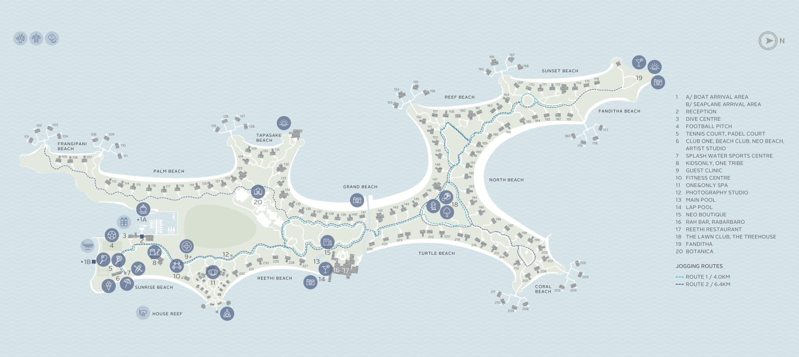 118 вилл, 6 ресторанов, 2 бара, 3 открытых бассейна (один – только для взрослых, один – детский), спа-центр, тренажёрный зал, центр водных видов спорта, дайвинг-центр, снорклинг, 2 теннисных корта, корт для падел-тенниса, футбольное поле, стена для скалолазания, прокат велосипедов, салон красоты, детский клуб, клуб для подростков, бутик.