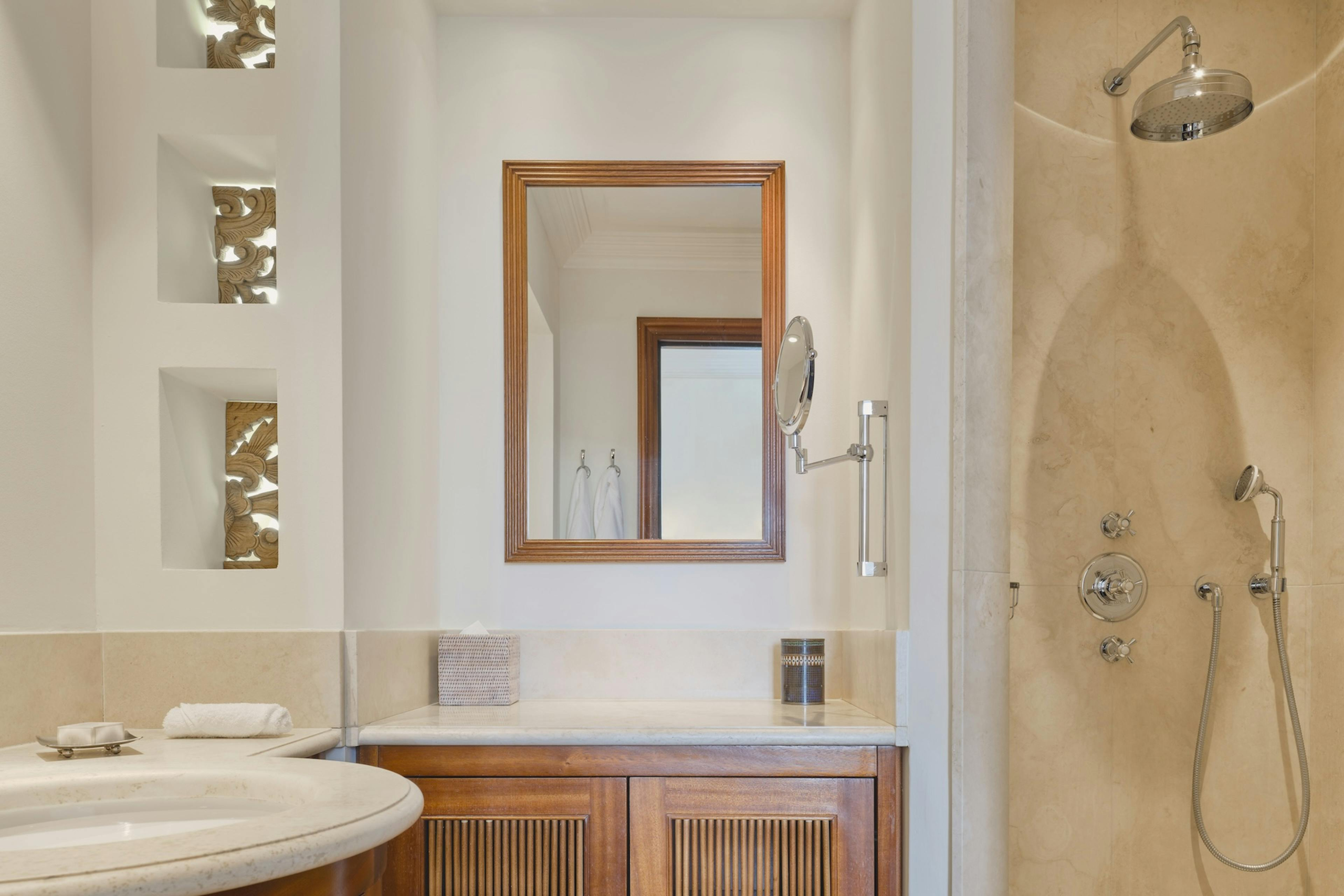 Спальня с кроватью king-size или кроватями twin, гостиная, 2 ванные комнаты (каждая с ванной и душевой кабиной). Гостиная и спальня разделены дверью.