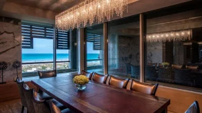 Вилла на берегу. 3 спальни (две – с кроватями king-size, одна – с кроватями twin), гостиная с обеденной зоной, кухня, 3 ванные комнаты (две – с ванной и душевой кабиной, одна – с джакузи и душевой кабиной), комната для обслуживающего персонала, терраса с обеденной зоной и душем на открытом воздухе, 2 открытых бассейна, парковка. Гостиная и спальни разделены дверями.
