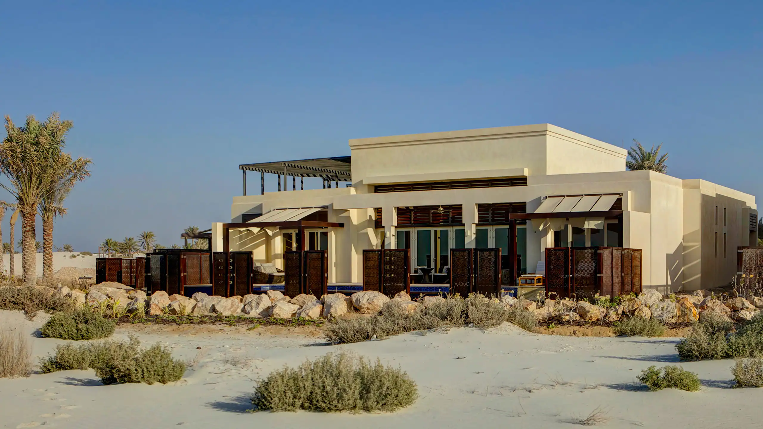 Входящий в люксовый портфель Park Hyatt гостиничной корпорации Hyatt курорт неоднократно удостаивался звания «Ведущий курорт Абу-Даби» по версии World Travel Awards, а также отмечен четырьмя звёздами авторитетного Forbes Travel Guide. Архитекторы нью-йоркской студии Perkins Eastman и дизайнеры сингапурского бюро Wilson Associates при работе над проектом вдохновлялись арабским культурным наследием. Интерьеры в природных тонах декорированы восточными орнаментами и украшены работами местных художников. Помимо номеров, курорт предлагает размещение на 18 абсолютно приватных виллах с собственными бассейнами и обслуживанием персональным батлером. Во всех апартаментах представлены туалетные принадлежности линейки Bergamote 22 от культового парфюмерного дома Le Labo.