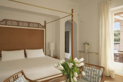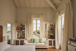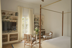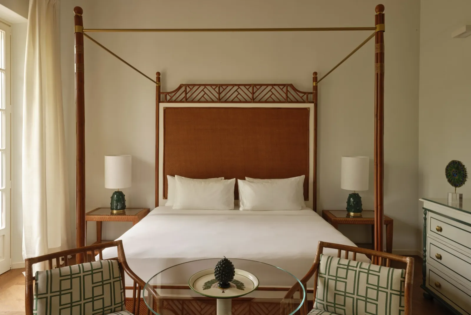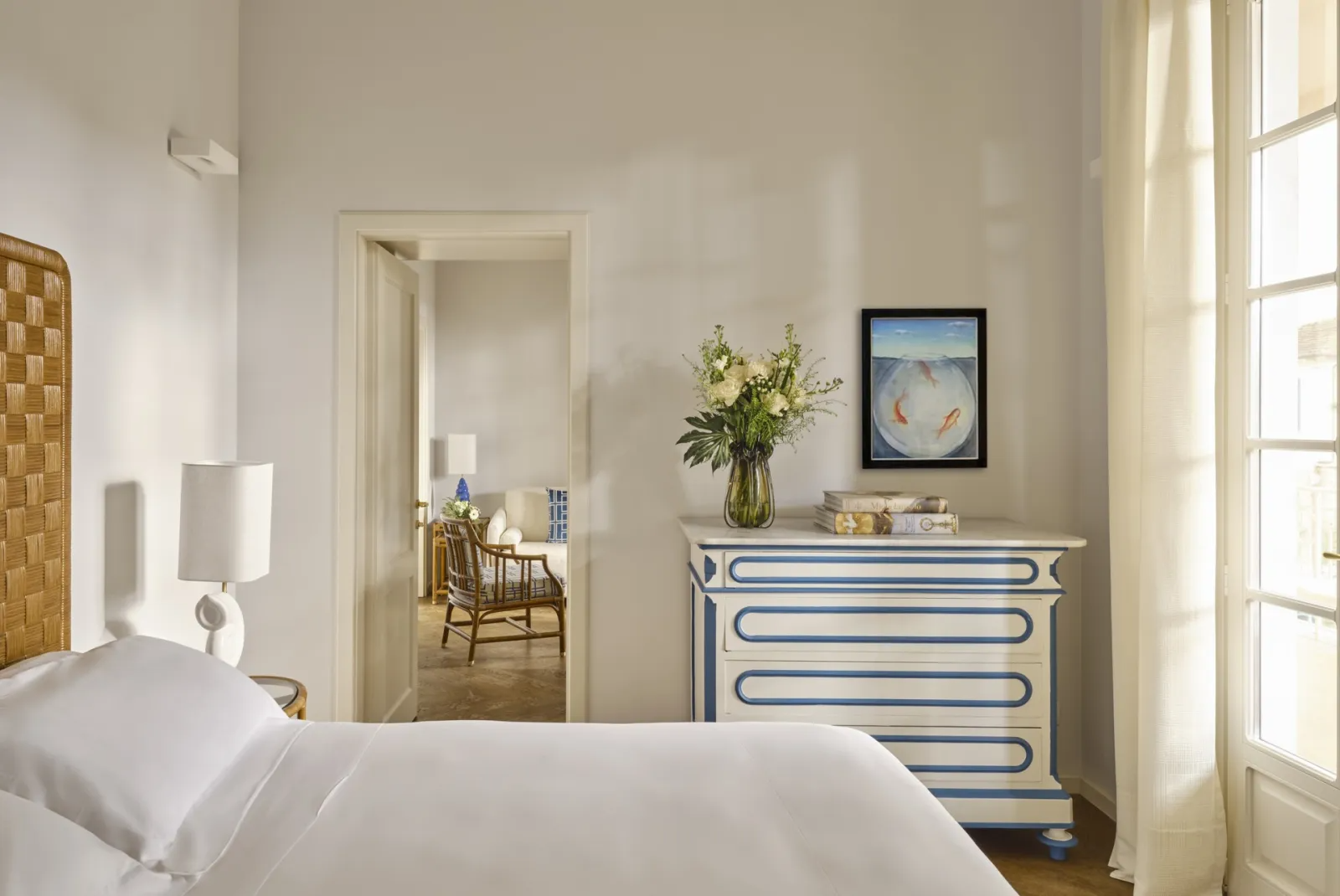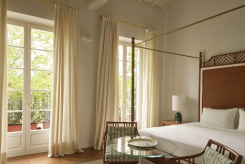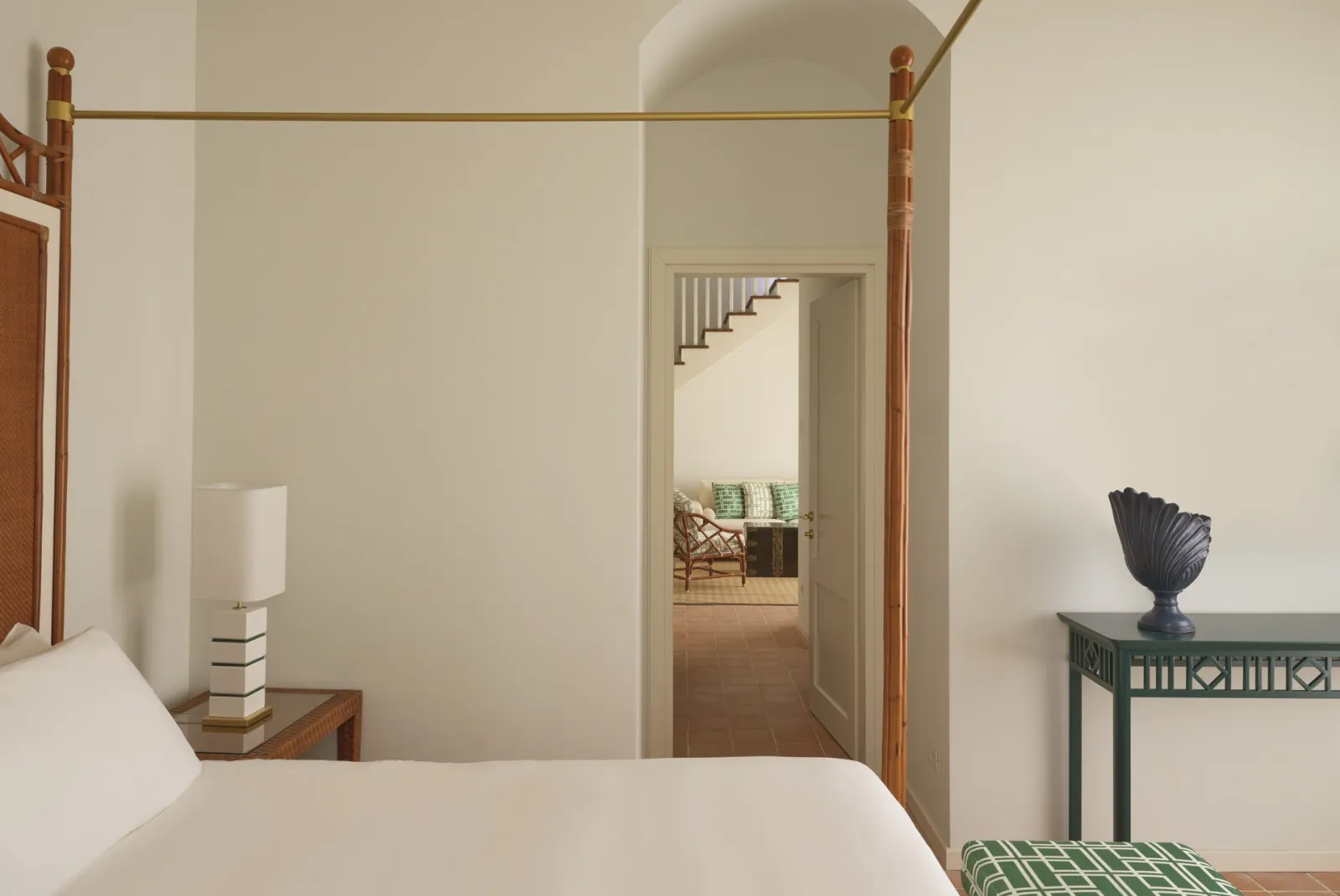 Архитектор Пьера Темпести Бенелли наполнила почти белоснежные интерьеры номеров ретрошармом: плетёные изголовья кроватей, мебель из бамбука, расписанные вручную обои, керамическая плитка в ванных комнатах, терракотовая плитка на полу, акценты синего и зелёного цвета. Все 17 номеров имеют террасу или патио с прелестной плетёной мебелью. Для ищущих максимальную приватность предусмотрена отдельно стоящая La Villetta – вилла без кухни, но с частным садом, бассейном и террасой на крыше. Туалетные принадлежности в ванных комнатах от флорентийского бренда Officina Profumo-Farmaceutica di Santa Maria Novella, ведущего свою историю с XIII века и тесно связанного с базиликой Санта-Мария-Новелла.