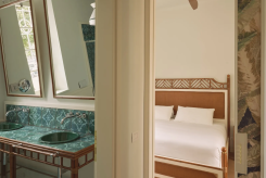 2 спальни (одна – с кроватью king-size и гостиной зоной, другая – с кроватью king-size), 3 ванные комнаты (одна – с ванной и душевой кабиной, другая – с ванной, третья – с душевой кабиной), 2 террасы (одна из них – с обеденной зоной на открытом воздухе).