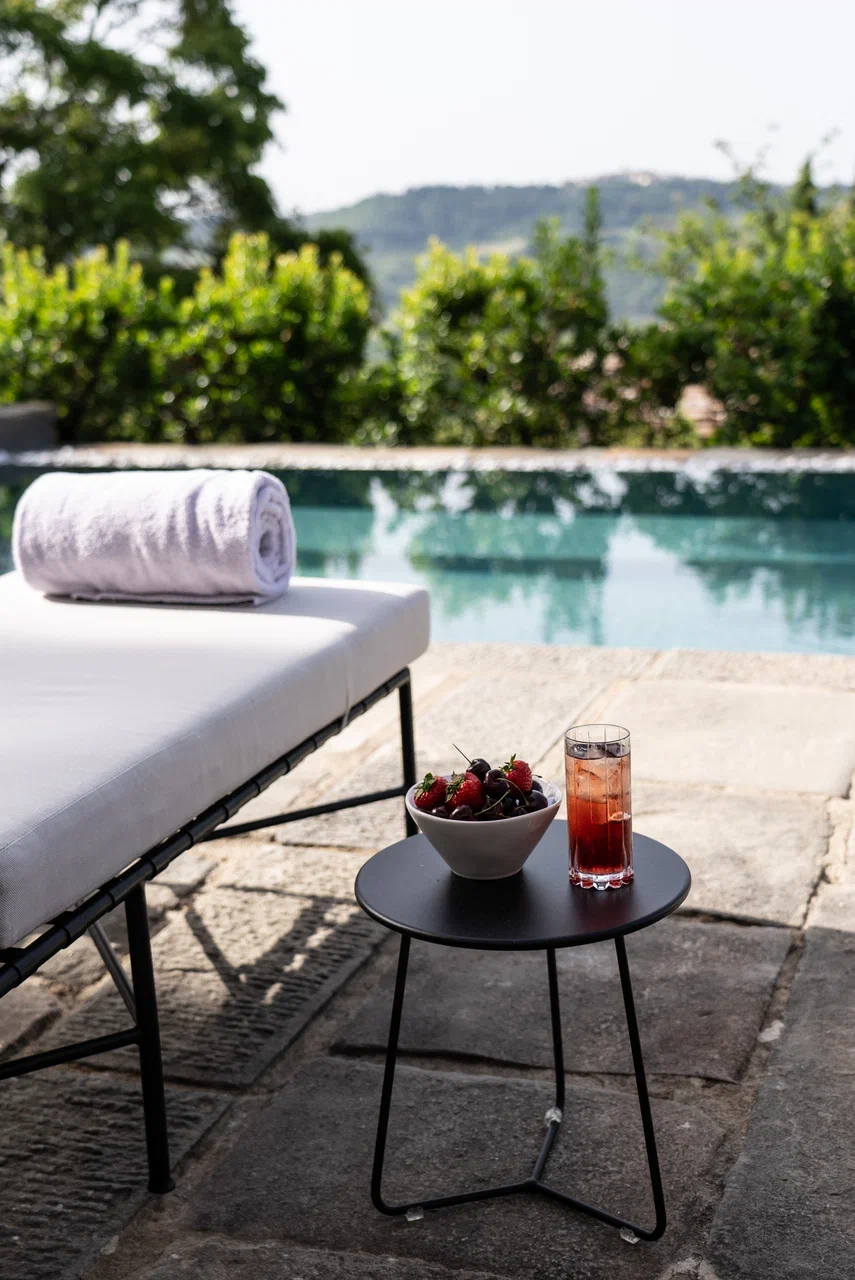 На зелёной территории отеля есть открытый бассейн и спа-центр, где предлагают процедуры от французского бренда антивозрастного ухода Nooānce. Местоположение отеля позволяет активно исследовать Тоскану на автомобиле, перемещаясь по живописным дорогам между средневековыми деревеньками, винодельнями и историческими памятниками.